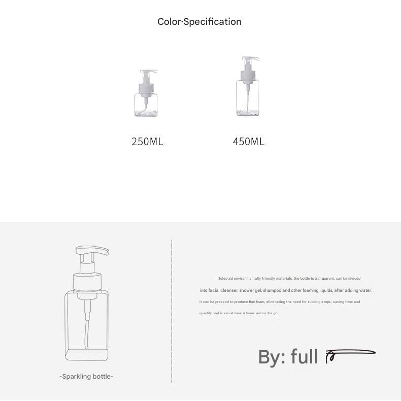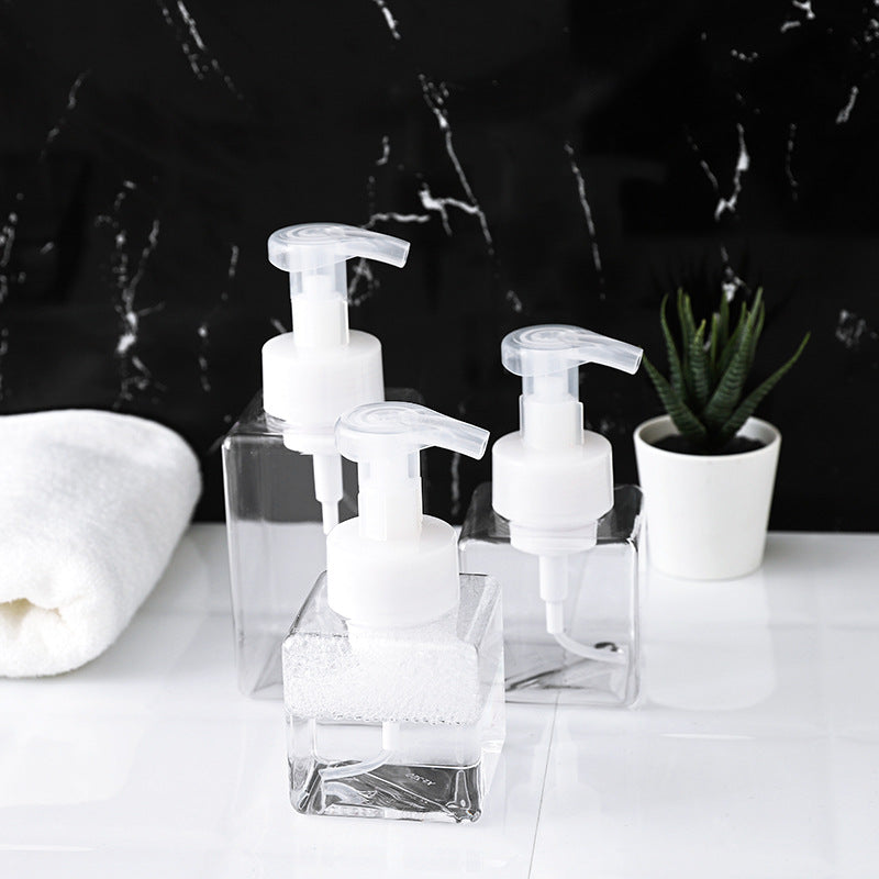 Our manual press foaming dispenser bottles are designed to make your daily hygiene and cleansing routines easier. The pump converts the liquid into foam, reducing the product used per wash and ensuring a more sustainable consumption. The transparent material allows you to quickly see what's inside and check the remaining quantity. With two size options, these bottles meet both individual and family needs. They are perfect for bathrooms, kitchens, or travel kits, providing a reliable dispensing solution without the hazards of spills or drips. Choose these stylish, practical dispenser bottles to enhance the efficiency and elegance of your personal care products.