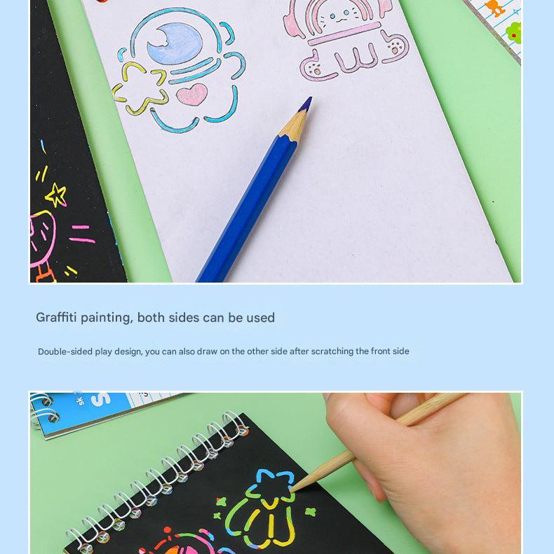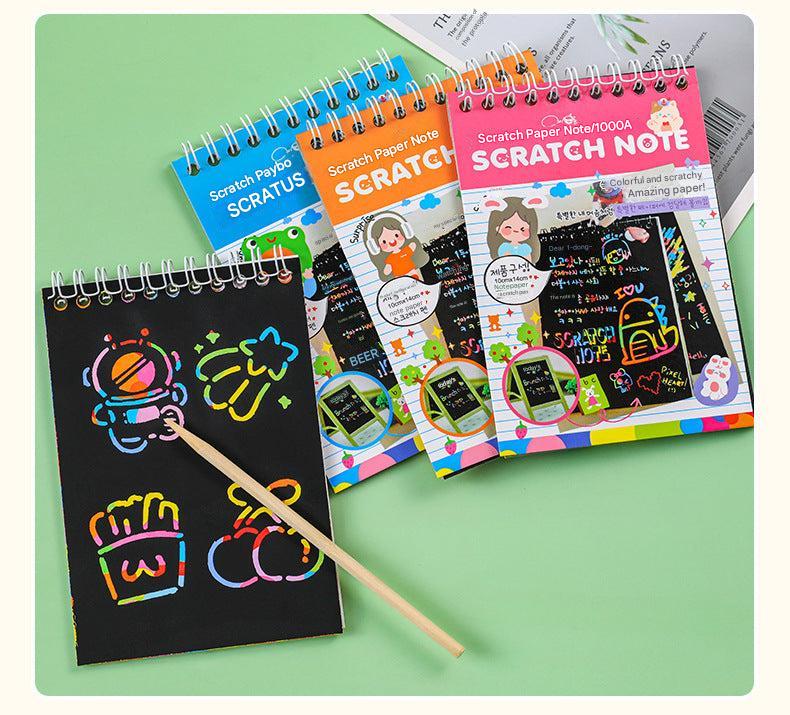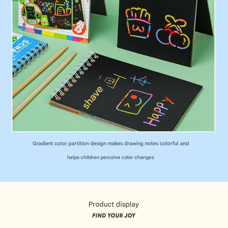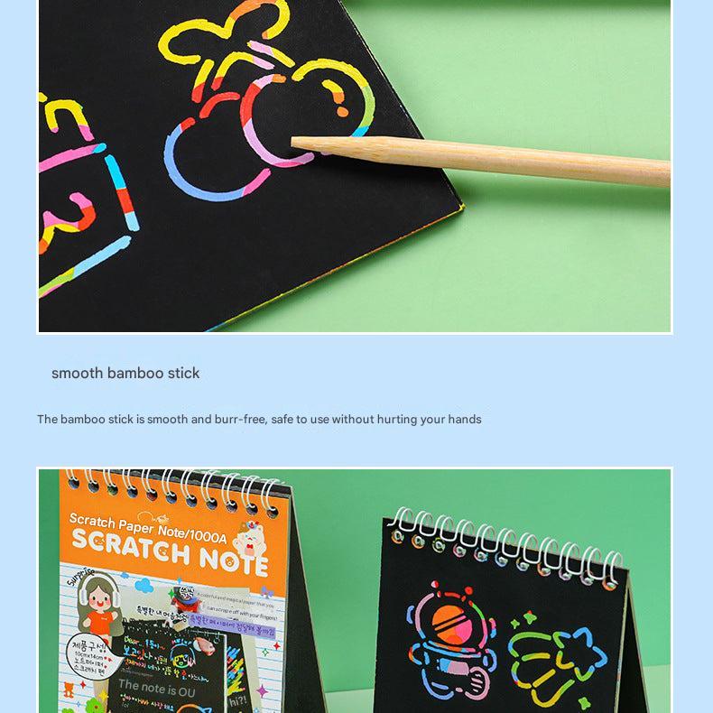 • Includes multiple color scratch papers, enhancing visual stimulation with vibrant hidden colors beneath a black matte coating.