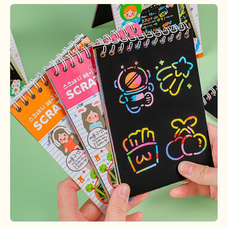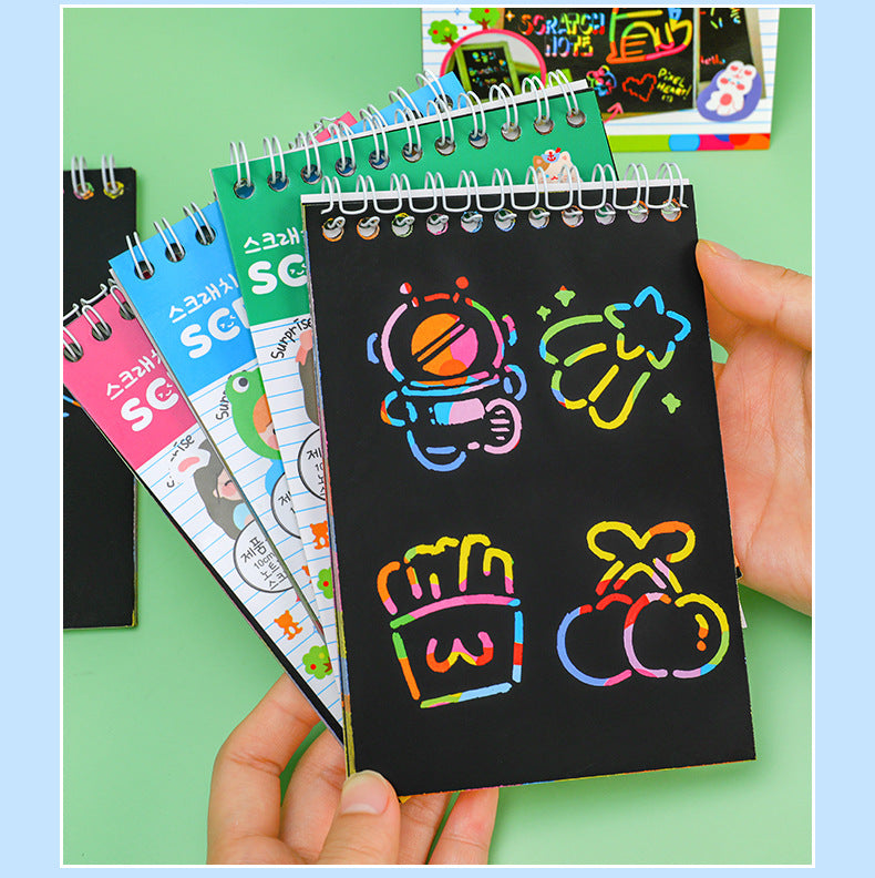 Unleash your child's creativity with our Kids Color Blast DIY Scratch Art Set. This artistic set captivates young minds, offering them a platform to scratch off the black matte surface of our specialty coated papers to reveal stunning rainbow colors underneath. With an array of vibrant scratch papers and easy-to-handle stylus pens, children can dive into an artistic world filled with unlimited design possibilities. The user-friendly and safe design makes this kit an excellent choice for enhancing fine motor skills and artistic insights. Whether preparing for a school project, a birthday party, or a fun weekend, this set promises hours of artistic enjoyment and a splendid way to engage with peers and develop social skills.