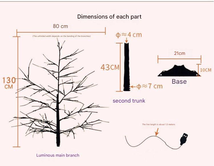 • Versatile Lighting Options: Available in multiple sizes from 60cm tabletop trees to 2.2m tall trees, with USB and battery-operated models for flexible placement.