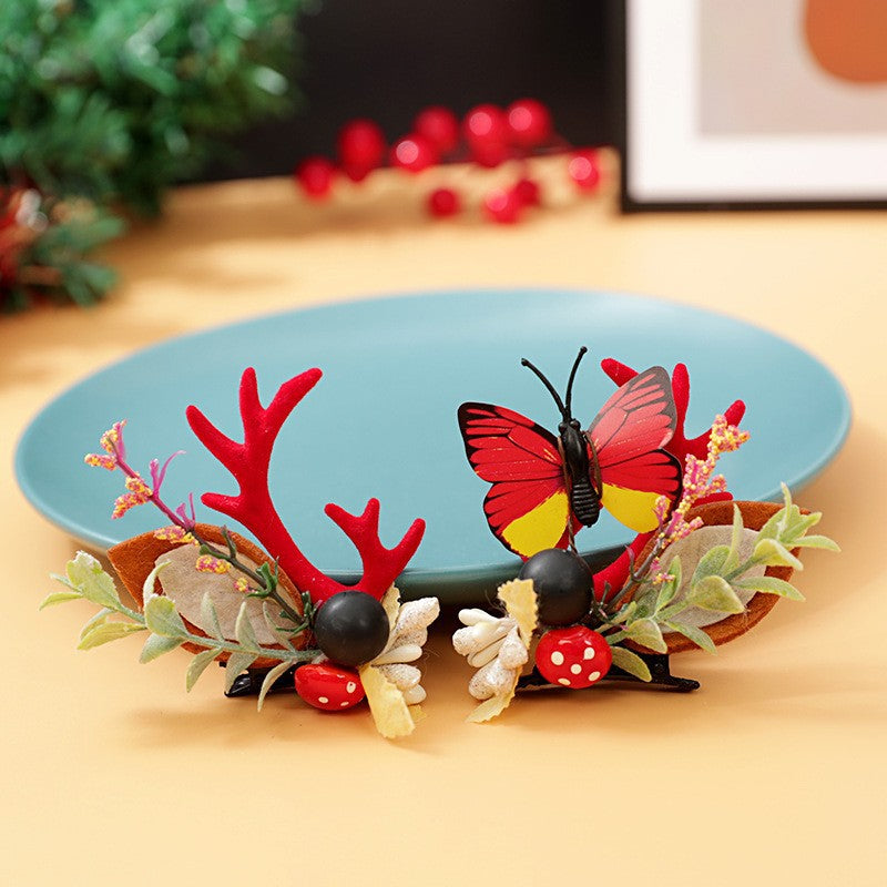 Color: 01#Christmas Hair Clip - White Pom-Pom Fake Light Red Antlers