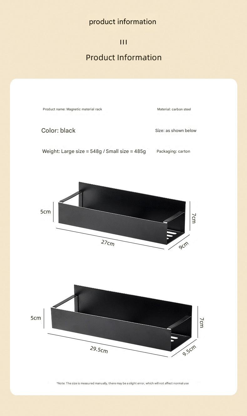 This Magnetic Kitchen Organizer Rack is designed to simplify the way you store your kitchen essentials. It adheres quickly to any metal surface using powerful magnets – no drilling or wall damage involved. With a single layer of storage, it keeps your spices and utensils within easy reach, making cooking more enjoyable. Whether you're organizing your kitchen, bathroom, or office, this rack is versatile enough for any surface, fitting seamlessly into various settings. Experience organized convenience during meal prep and everyday tasks with this efficient solution.