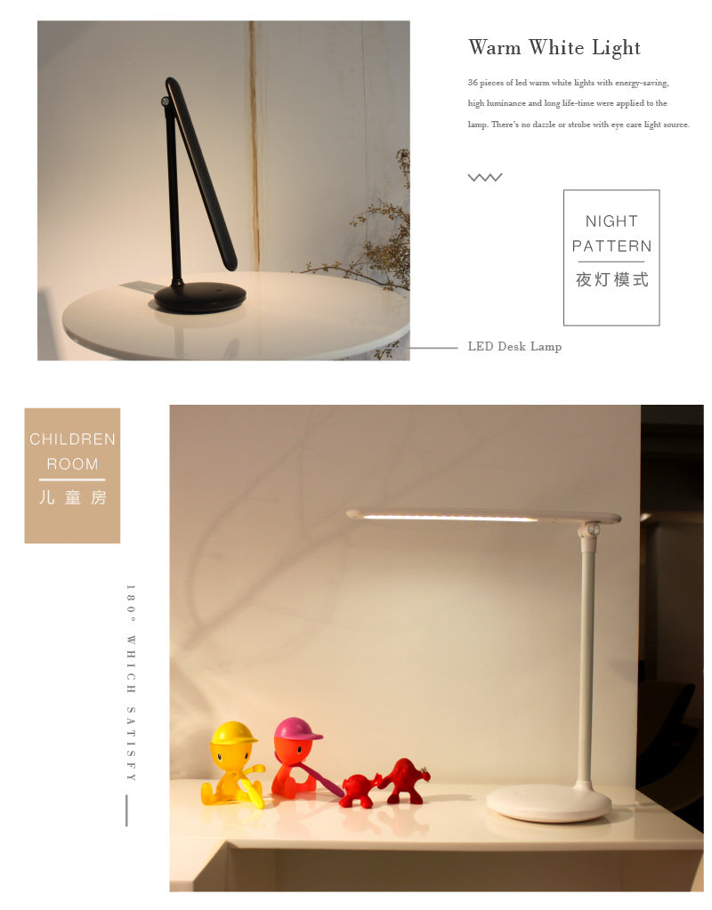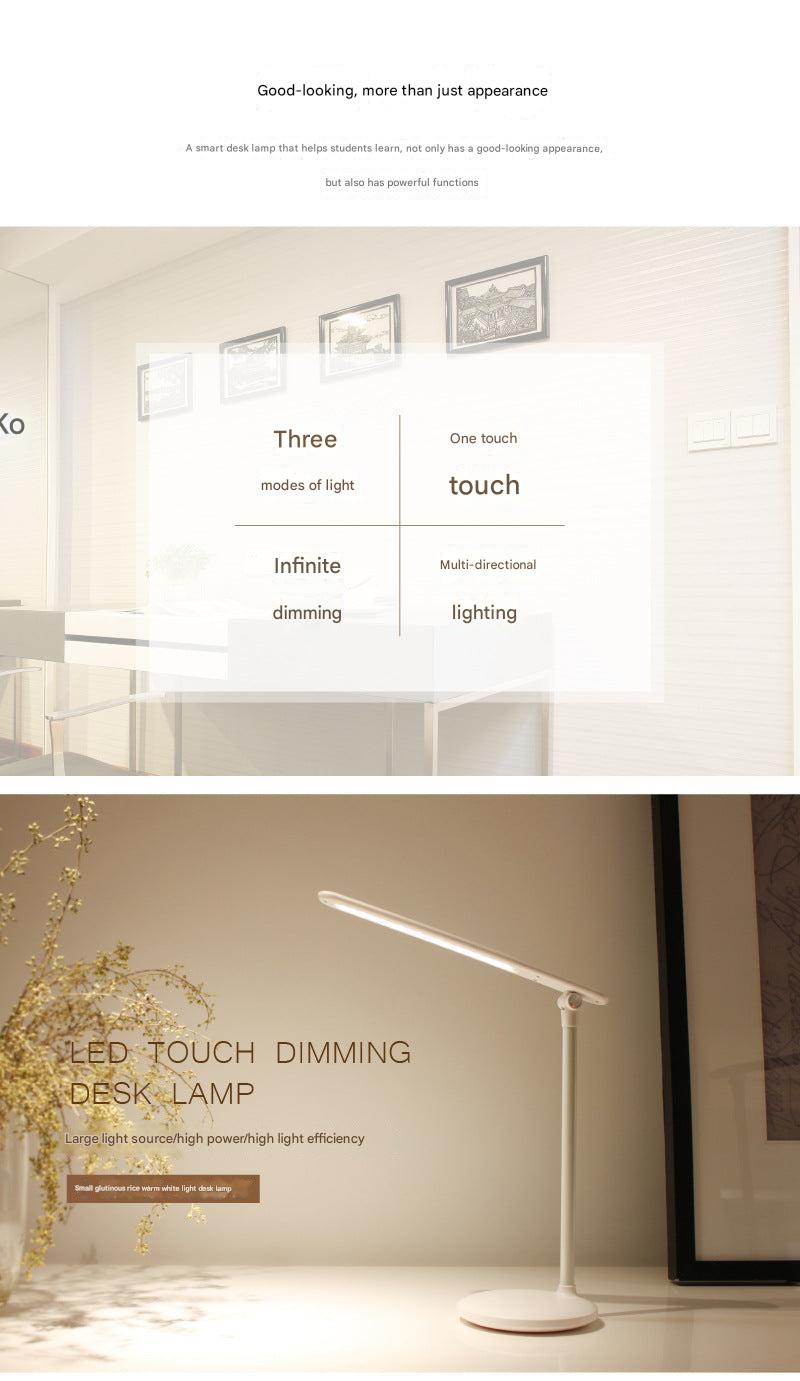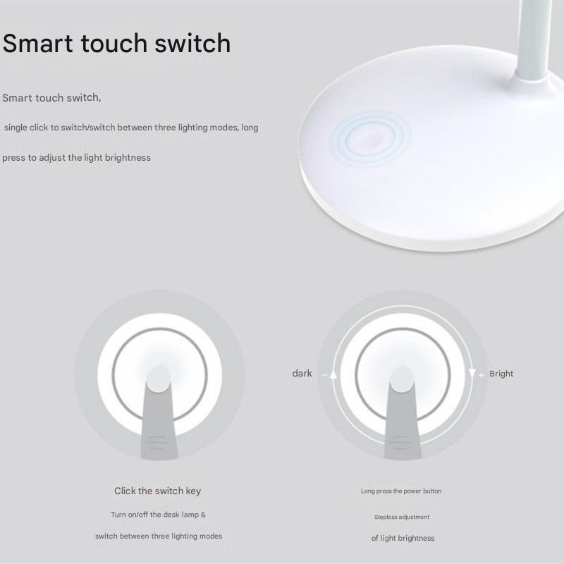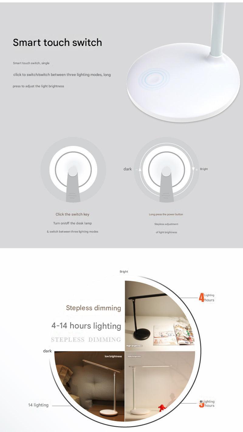 Modern LED Desk Lamp with Adjustable Brightness and Touch Control for Eye Comfort, Study, and Bedside Use - Black/White