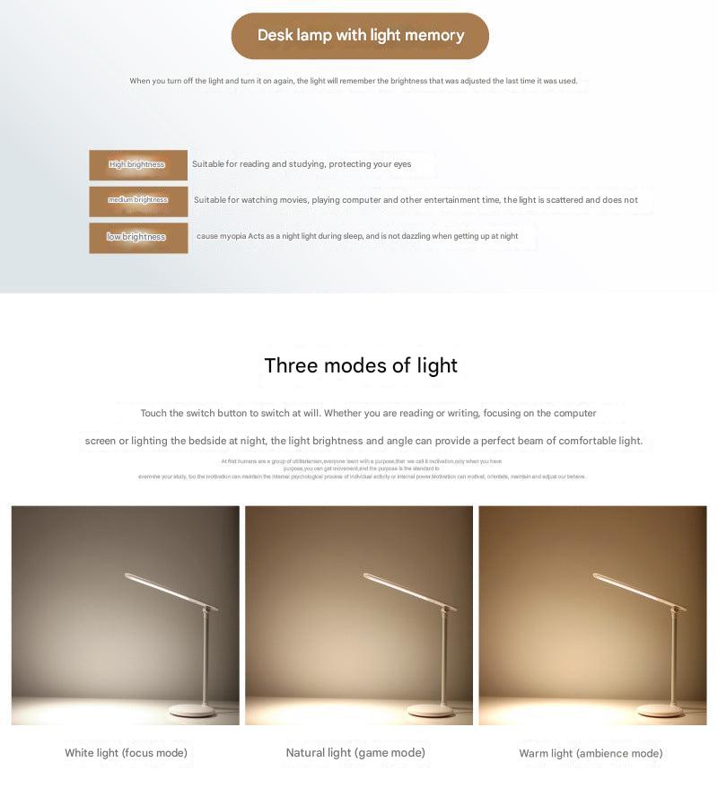 Experience unmatched convenience and eye comfort with our Modern LED Desk Lamp, tailored for both students and professionals. Its adjustable brightness feature allows for perfect lighting in various environments, promoting productivity and eye health. The sleek touch control panel simplifies operation, making it easy to adjust lighting levels. Crafted with eye-protective technology, this lamp minimizes glare and flicker, protecting your eyes during long study or work sessions. Its contemporary design fits effortlessly into any workspace, enhancing its aesthetic while providing functional light. The built-in battery ensures it can be used anywhere without the need for constant power supply, making it ideal for both stationary and mobile use. Perfect for anyone who values functionality and style in their lighting solutions.