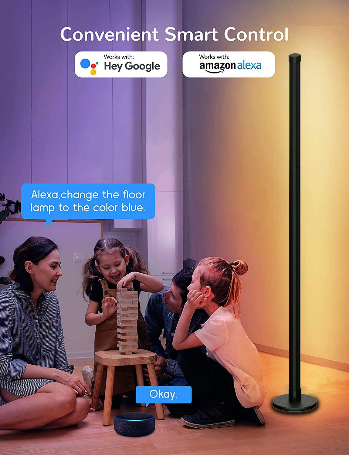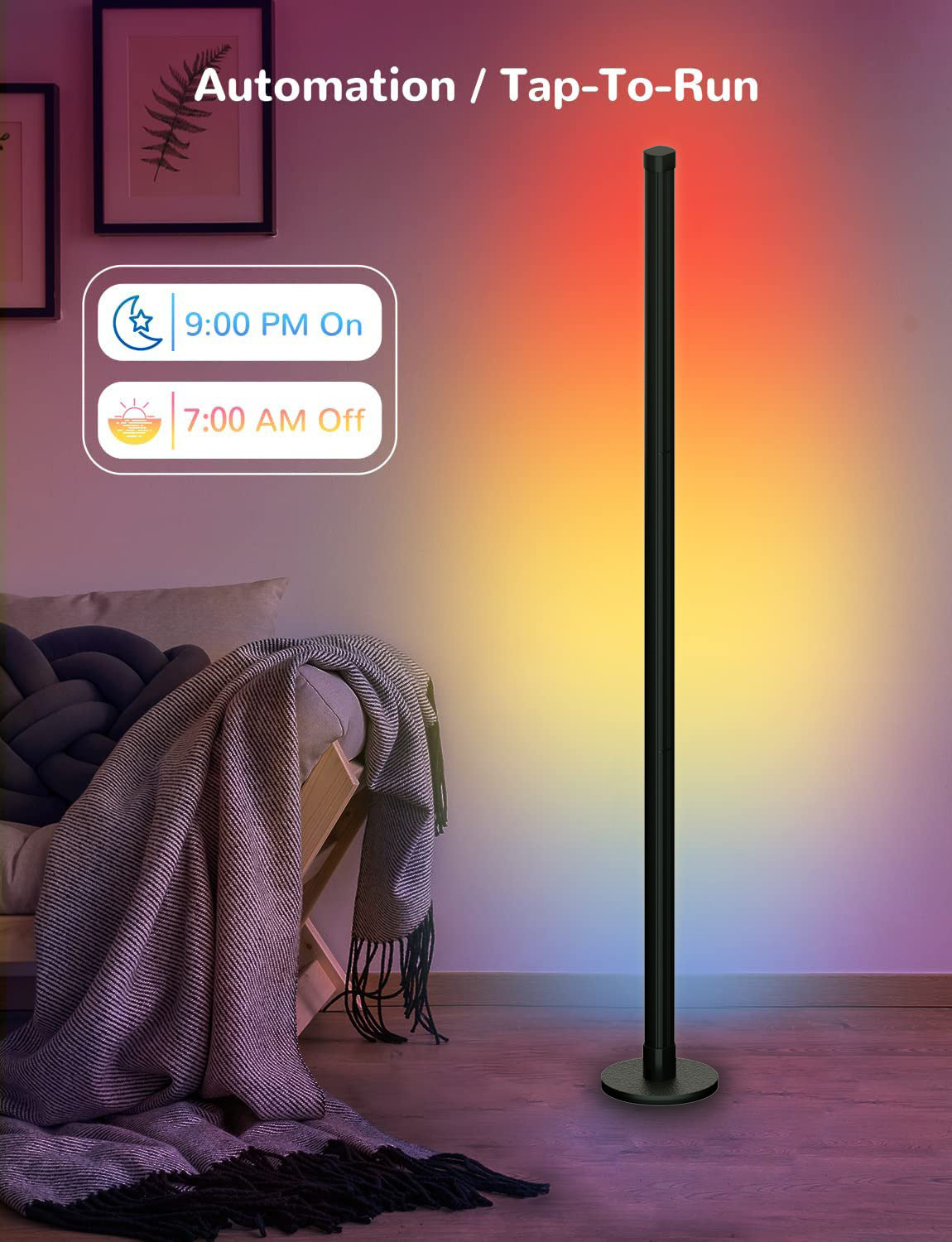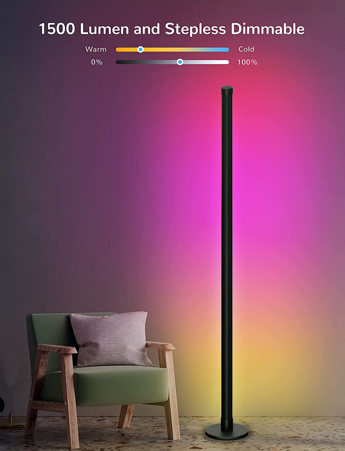 Enhance your living or workspace with this Modern Minimalist RGB Corner Floor Lamp. Equipped with RGB lighting technology, this lamp allows you to customize your lighting experience to fit any mood or occasion through a Bluetooth-controlled interface. Its sleek, contemporary design not only adds to its visual appeal but also fits perfectly in any corner to save space. This floor lamp's modular design offers the flexibility to adjust its height and configuration, making it an ideal choice for both commercial and residential spaces. Made from high-quality acrylic and ABS, it stands the test of time while delivering an environmentally friendly performance with its energy-efficient LED.