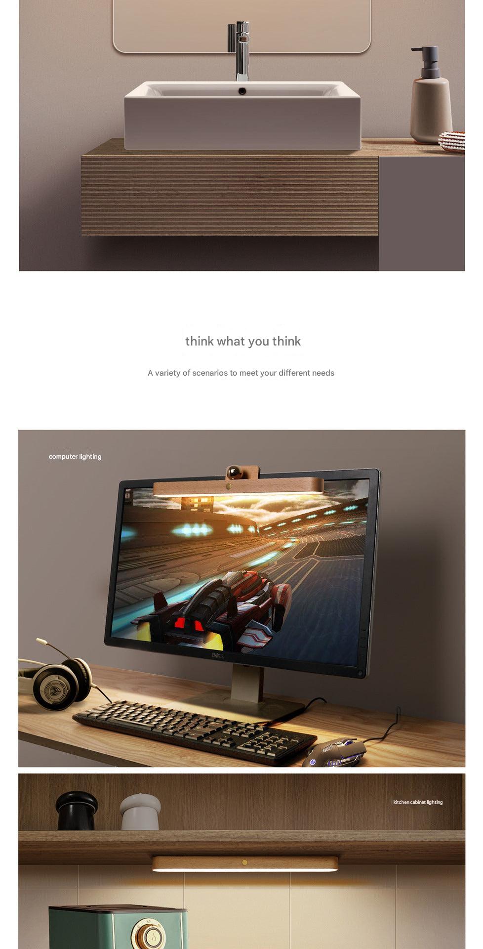 Modern Sleek Wireless USB LED Light Bar for Vanity Mirrors and Hallways, Touch-Controlled Yellow Lighting, Battery Operated
