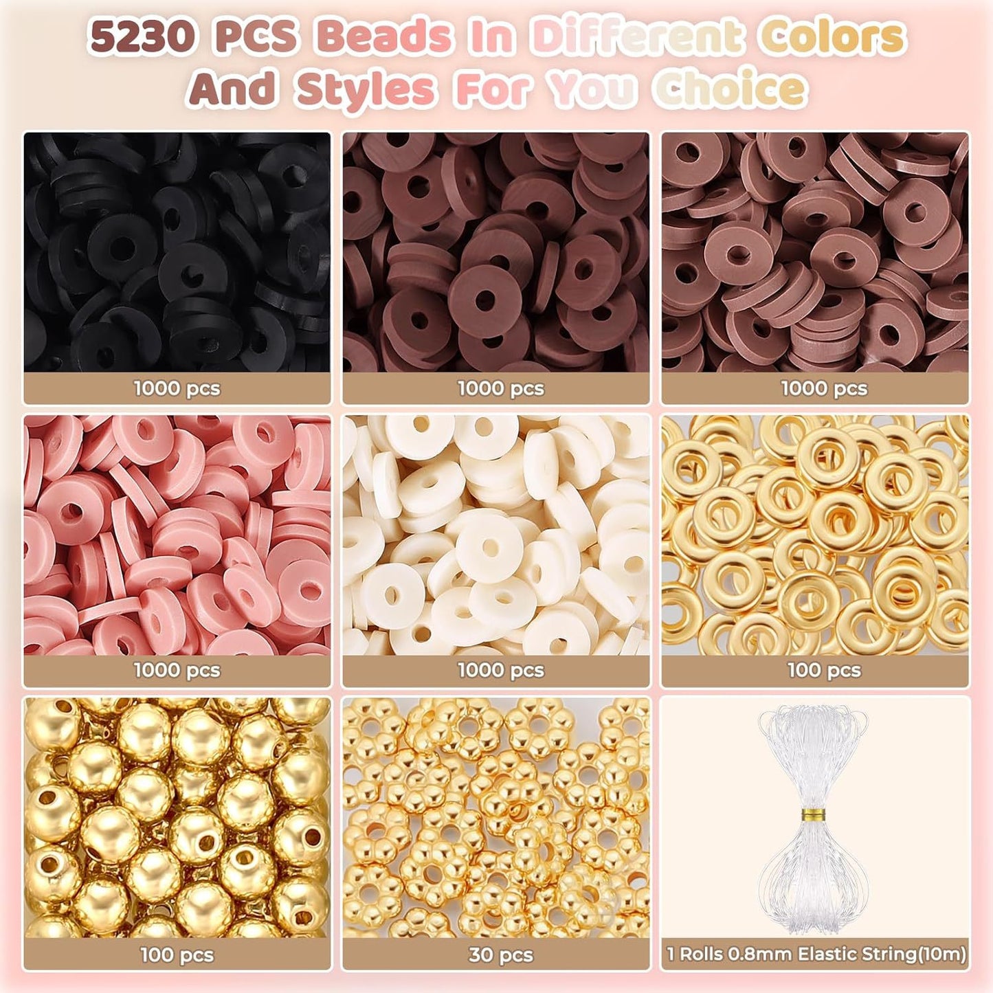 Color: Pink Series (6000pcs) including string (Pack of 5)