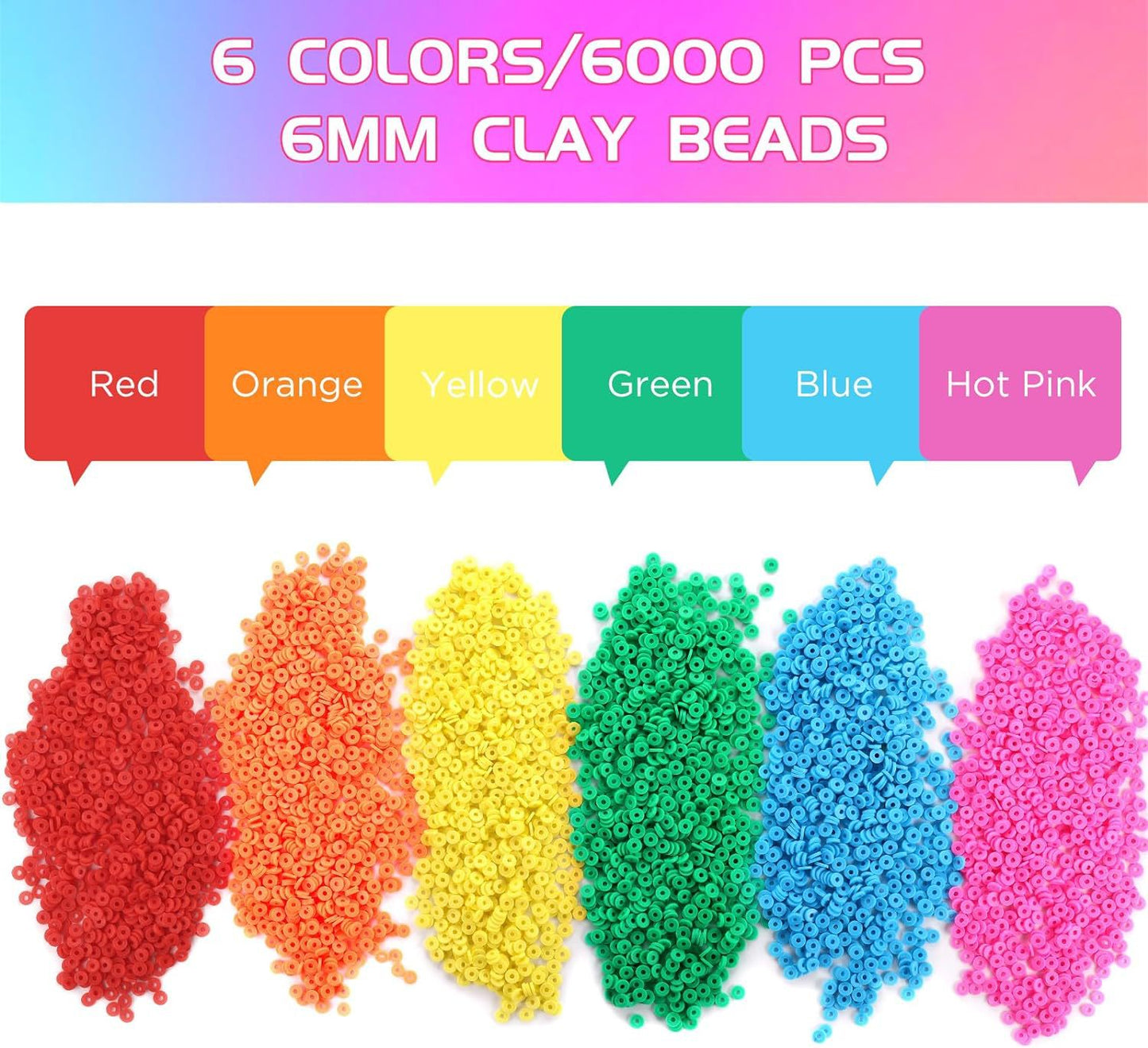 • Expansive Bead Set: Offers approximately 6000 vibrant, multi-colored soft clay beads ideal for assorted crafting projects.