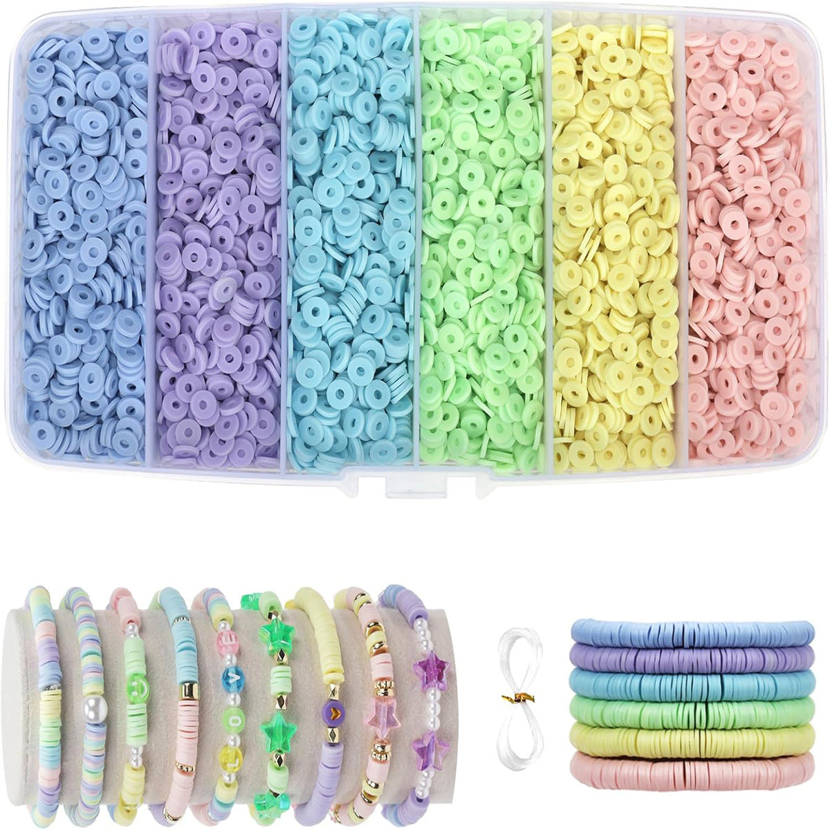 Unleash your creativity with our comprehensive Multi-Color DIY Clay Bead Set, featuring approximately 6000 pieces in an array of trendy shades. Whether you're aiming to design vibrant necklaces, charming bracelets, or other custom jewelry pieces, this kit offers the variety and quality needed to spark your imagination. Included strings and a palette of both subtle and bold colors make it simple to start crafting beautiful, personalized items for yourself or as thoughtful gifts. Dive into the world of DIY jewelry with this versatile and full-featured bead kit.