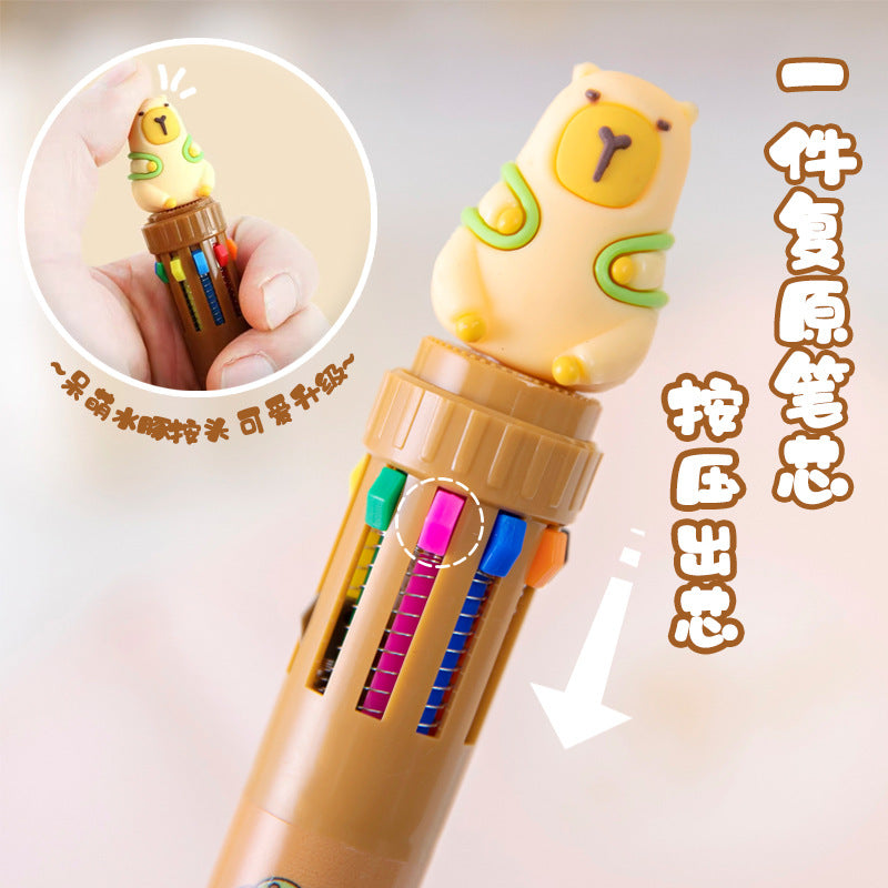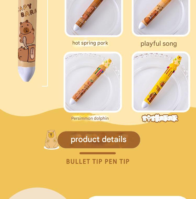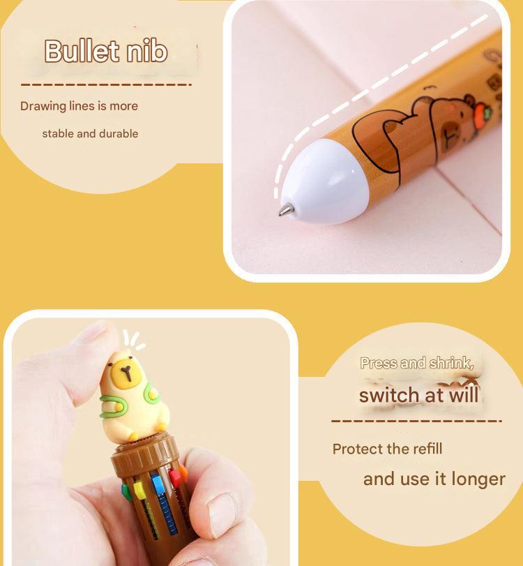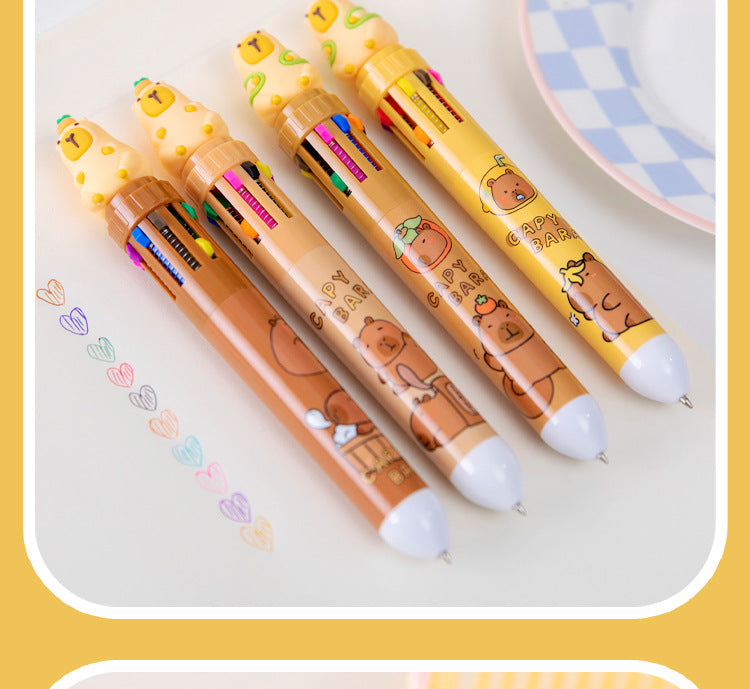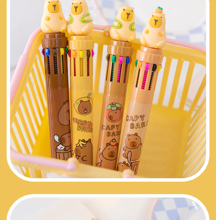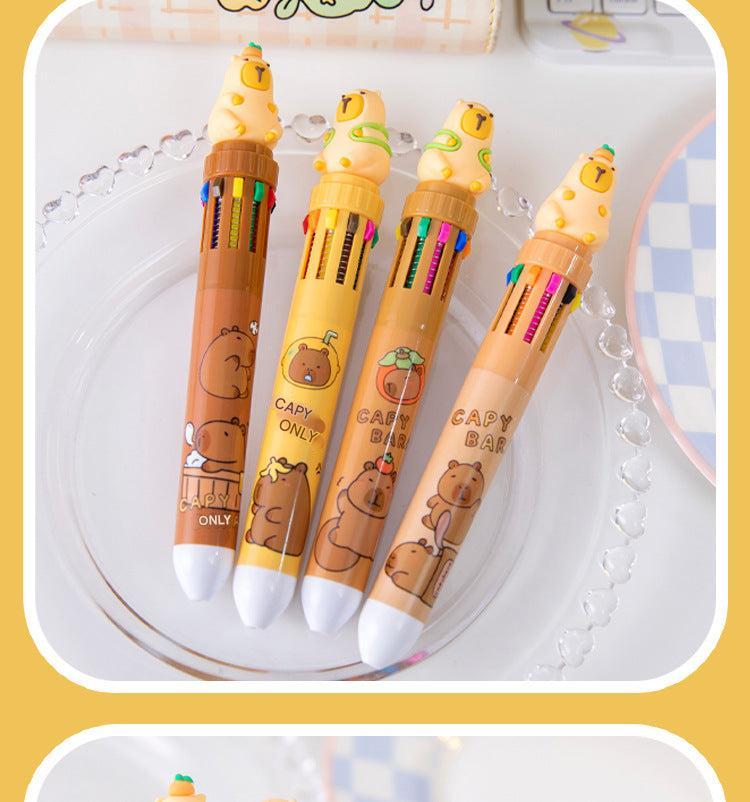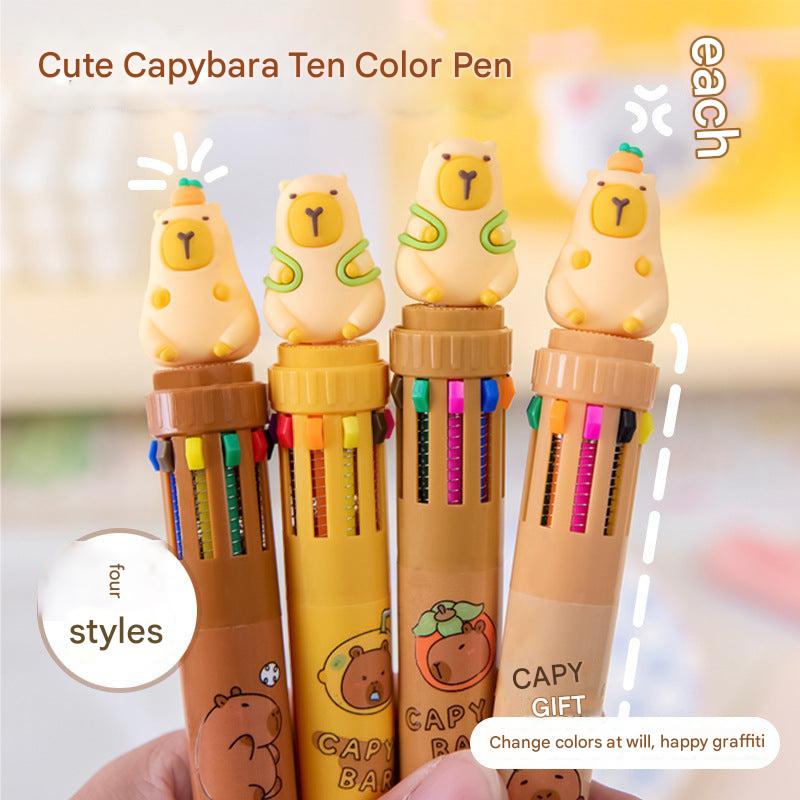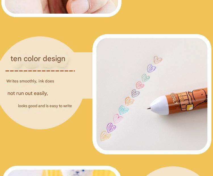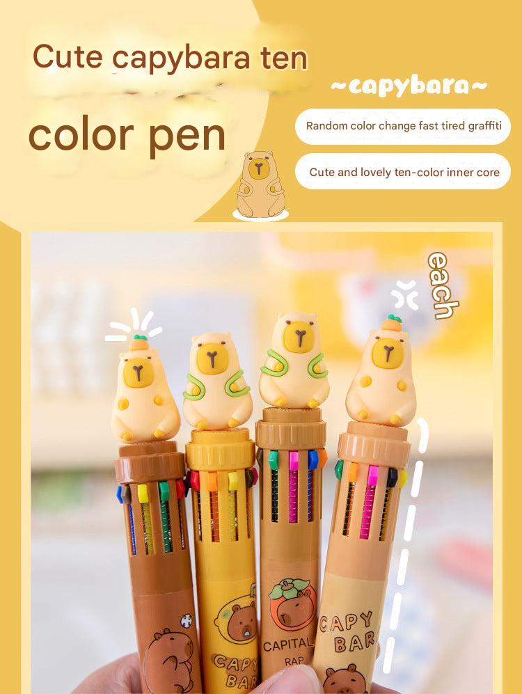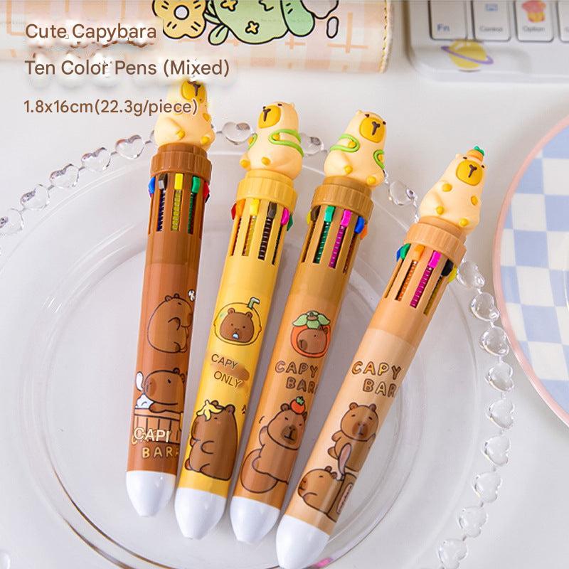 Multicolor Capybara Cartoon Gel Pens for Students and Creatives, 10-Pack
