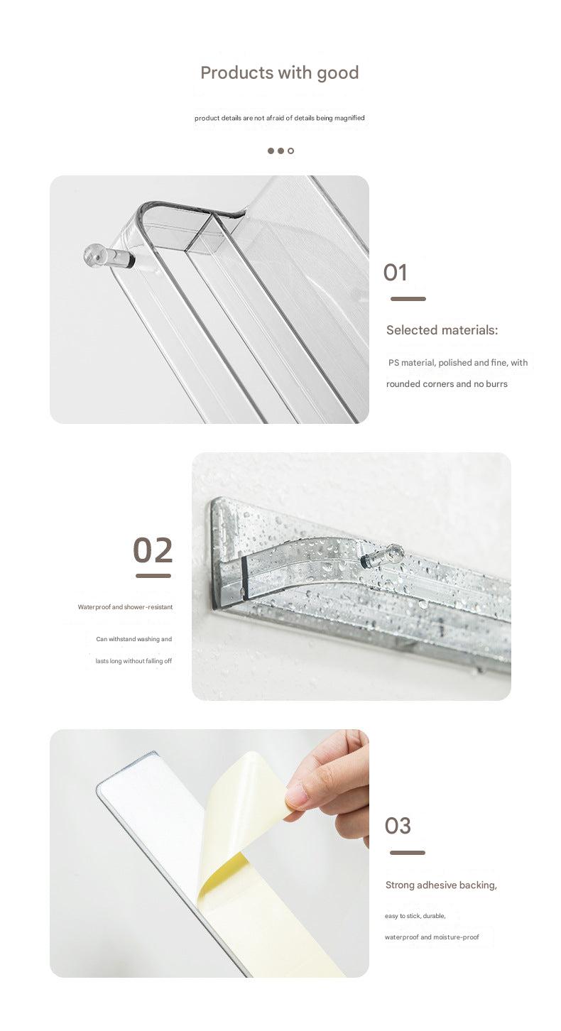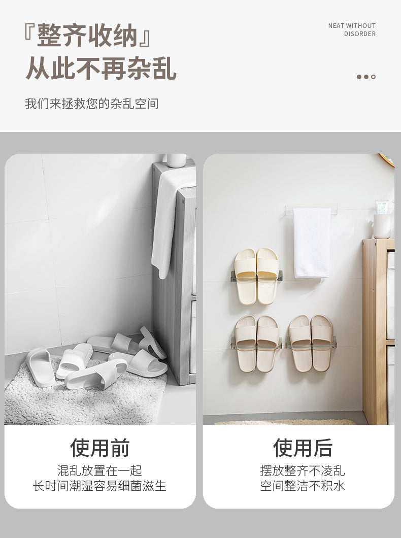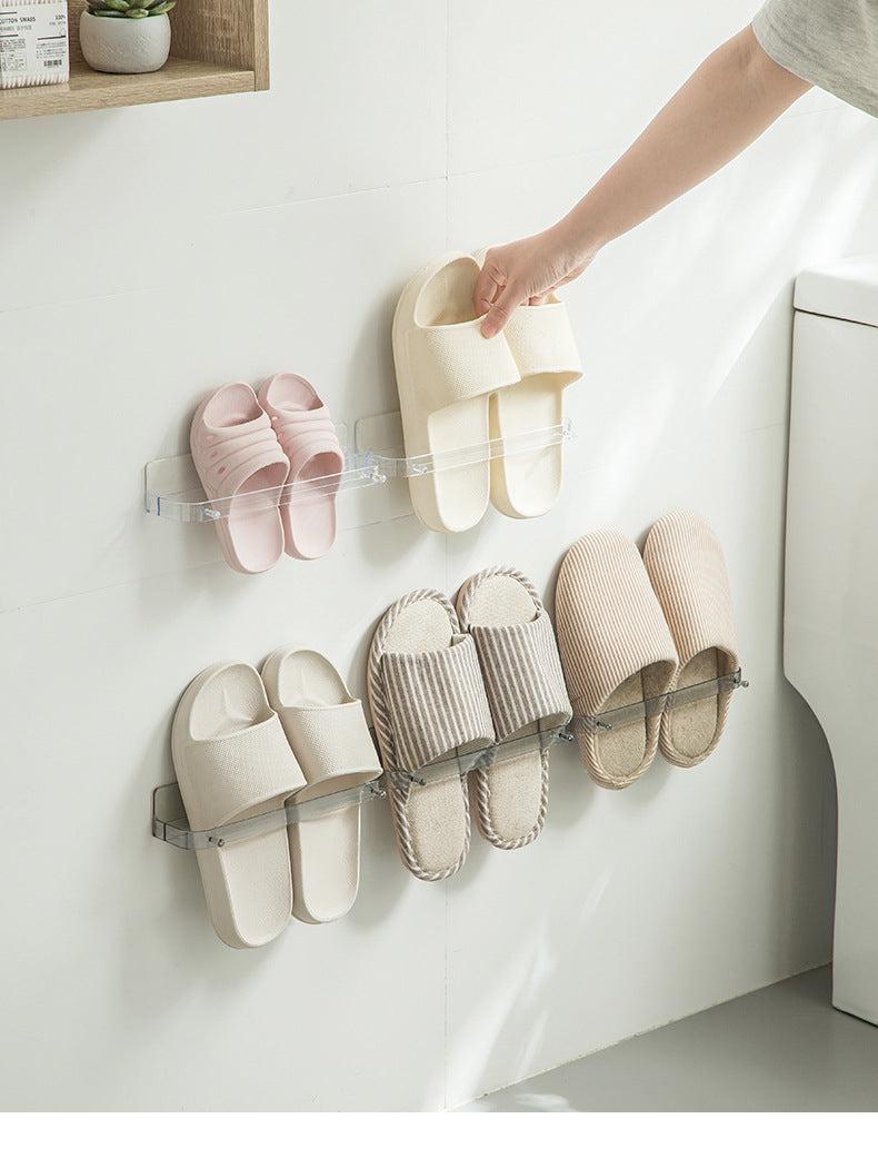 This no-drill bathroom shoe rack provides a practical solution for organizing wet and dirty footwear without the mess of tools or drilling. Made from durable PS material, it cleverly mounts on the wall to save floor space. Simply peel, stick, and organize your shoes in seconds! Ideal for tight spaces, you can use this rack in your bathroom, laundry room, or even kitchen. Its sleek, minimalist design not only holds your shoes securely but also enhances your home's aesthetic. With dimensions of 22.5 cm in length, this rack fits easily above the floor and can accommodate various shoe sizes. It’s transparent color options in white and gray blend seamlessly with your decor. Whether you're coming in with wet shoes or need a clean spot for sandals, this organizer solves your storage issues efficiently.
