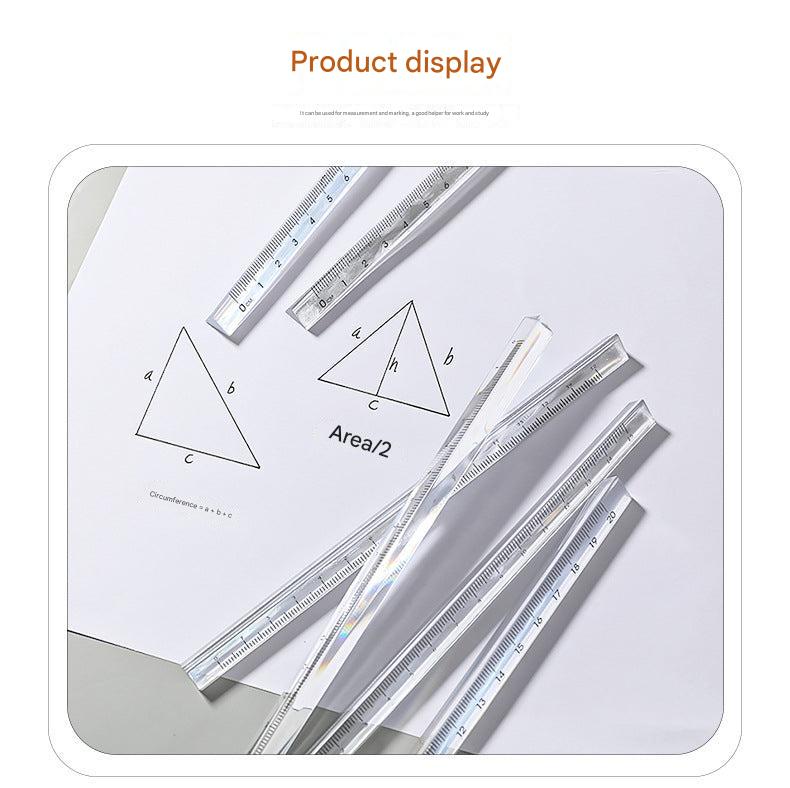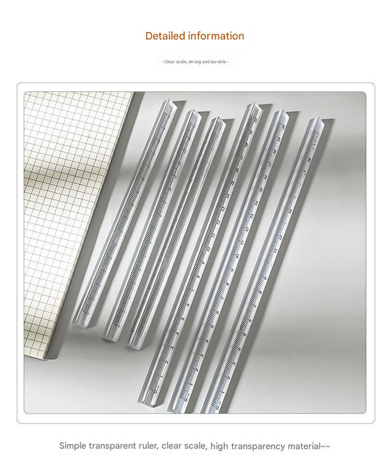 Designed to deliver precision and versatility, our 20cm Triangular Ruler is an indispensable tool for students, architects, and engineers alike. Made from durable, clear acrylic, it offers visibility and precision for any drawing or measurement task. Each side of the triangular design features a different scale, enabling users to adeptly manage various projects. Whether used for complex architectural drafts or simple classroom tasks, this ruler proves essential. Its portability and customization options also make it a perfect choice for personal or corporate gifts.