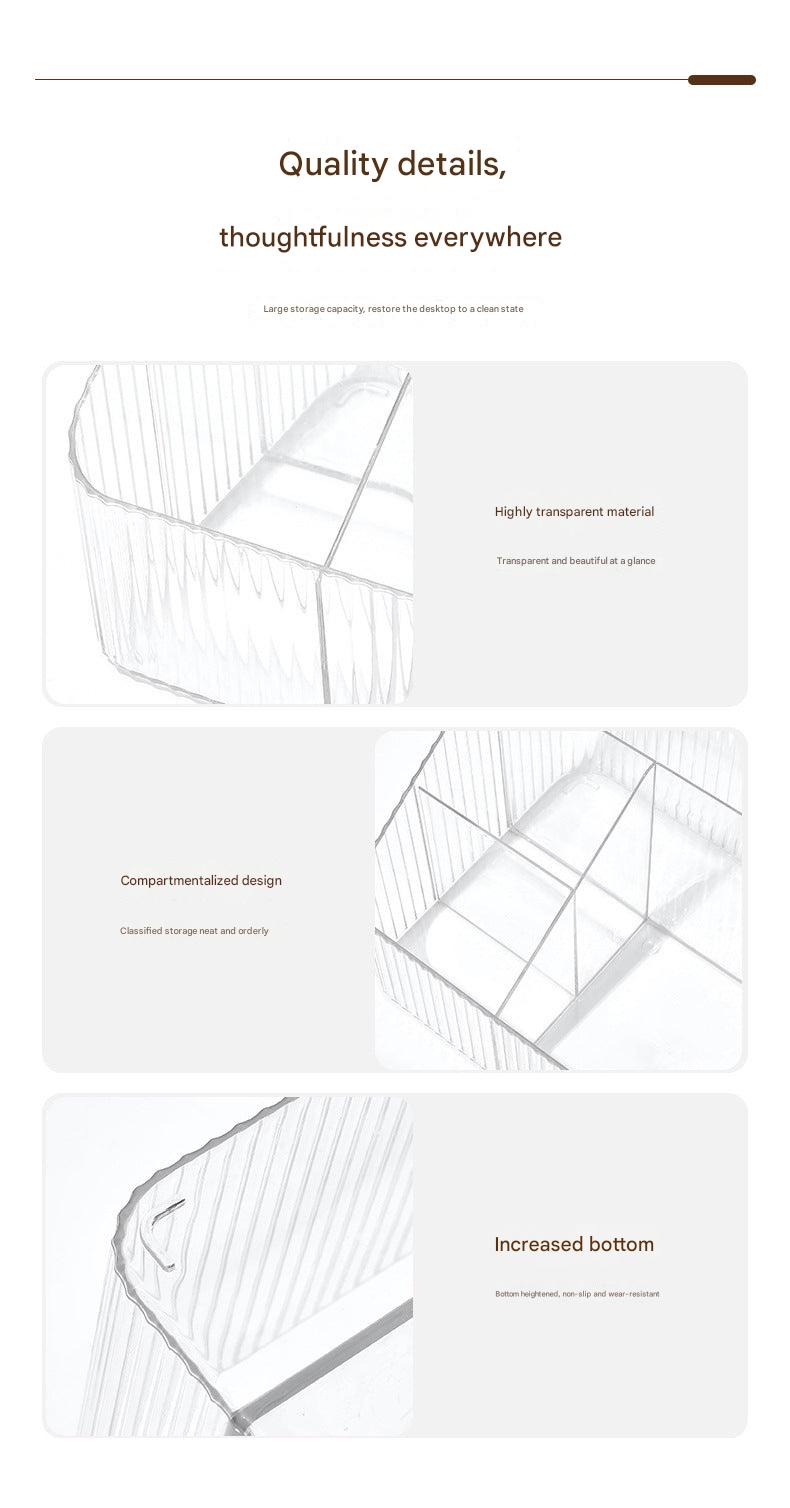 Premium Acrylic Makeup Organizer Box with Compartments - Clear Desktop Storage for Cosmetics