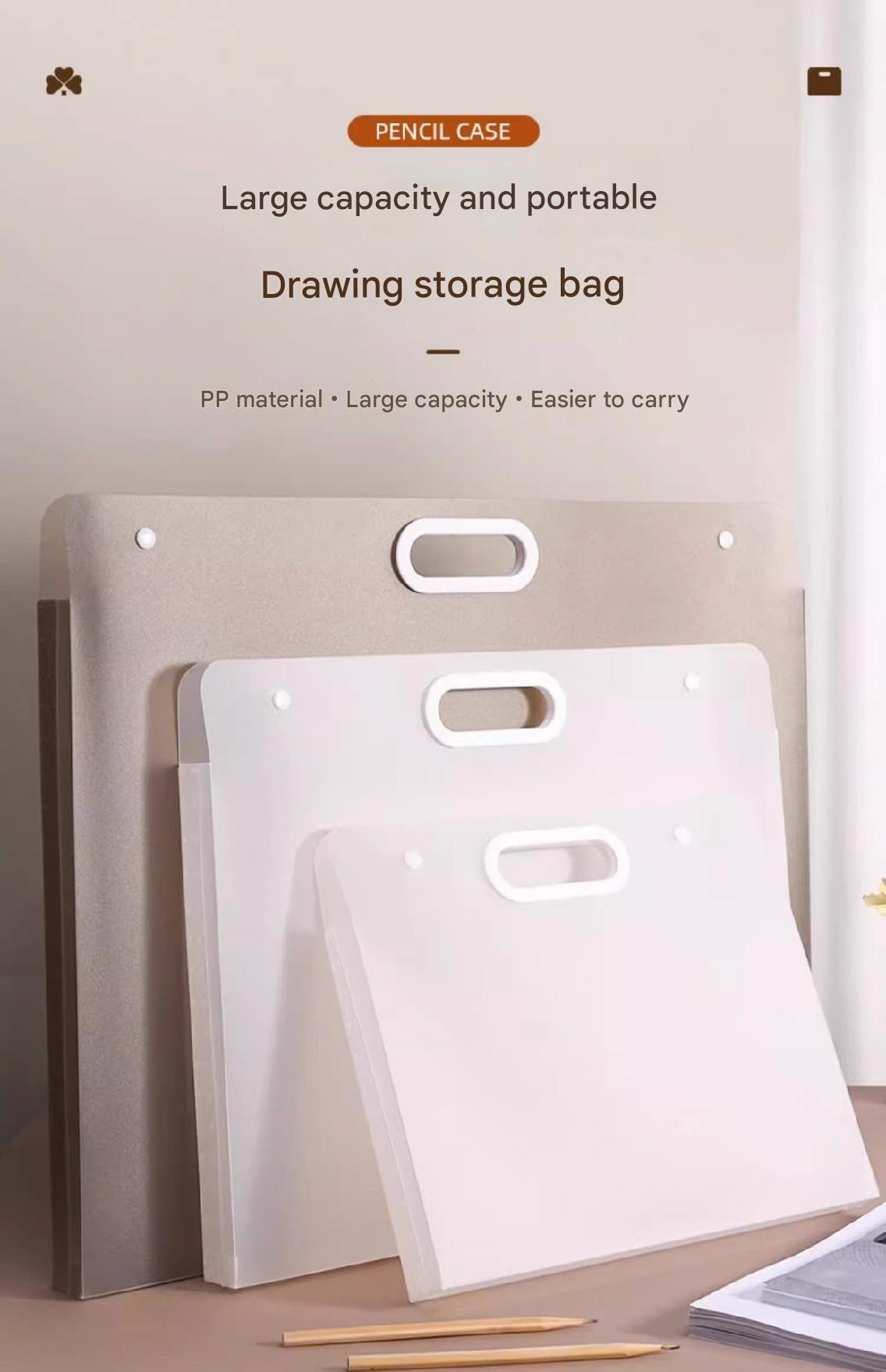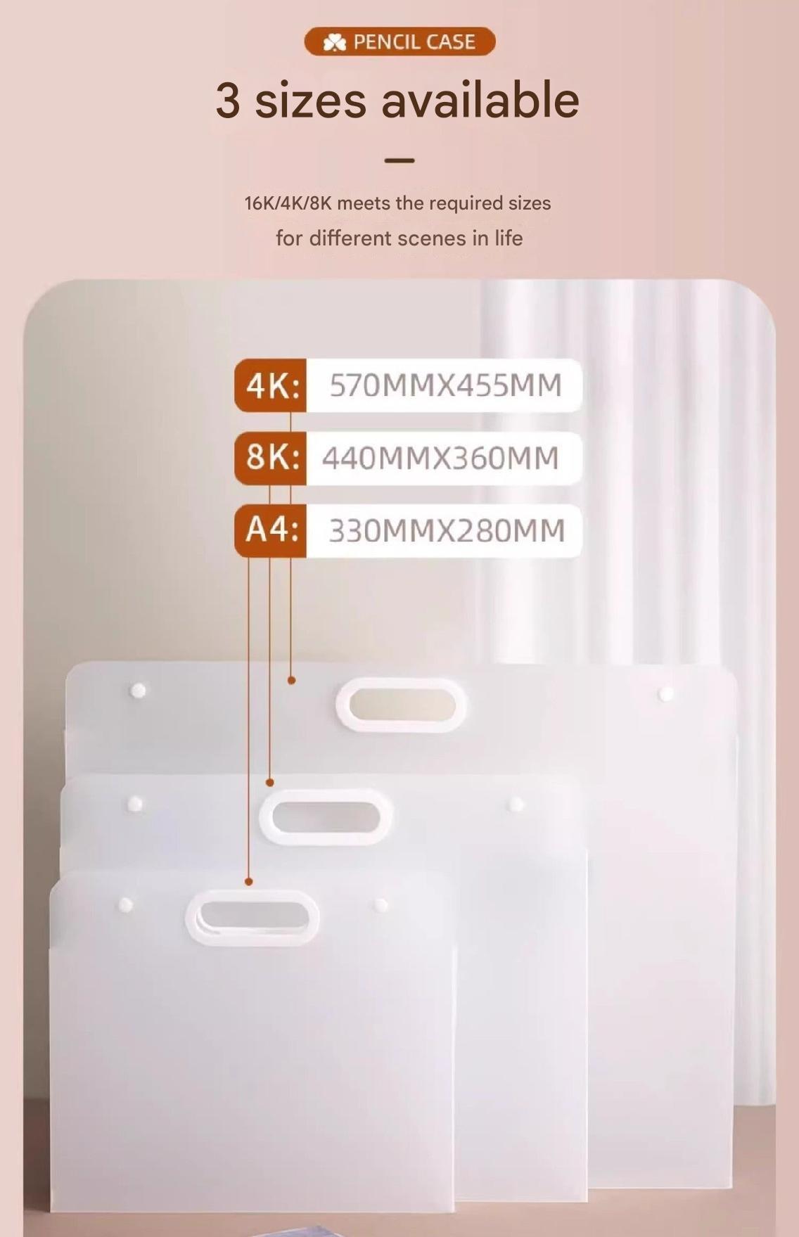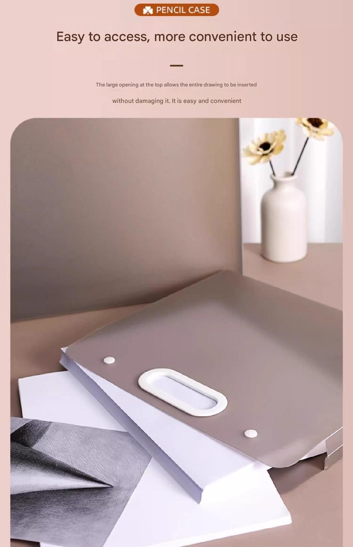 Expand your artistic horizons with our Professional Art Carry Bag, ideal for 4K and 8K sketchbooks. This bag promises both functionality and style, making it a must-have for any discerning artist or art student. The robust PP material ensures your art pieces are shielded from damage and wear while the matte finish keeps the bag looking new. Transport your sketches, drawings, and papers from place to place effortlessly with the sturdy handle. With a choice of tasteful colors and a dependable snap-button closure system, your valuables are kept secure during your travels.