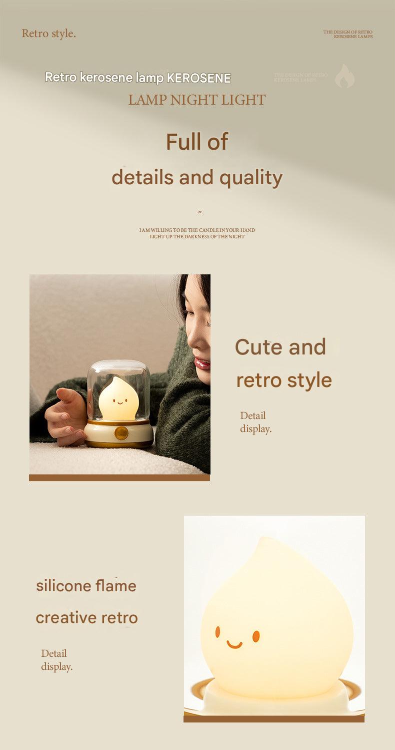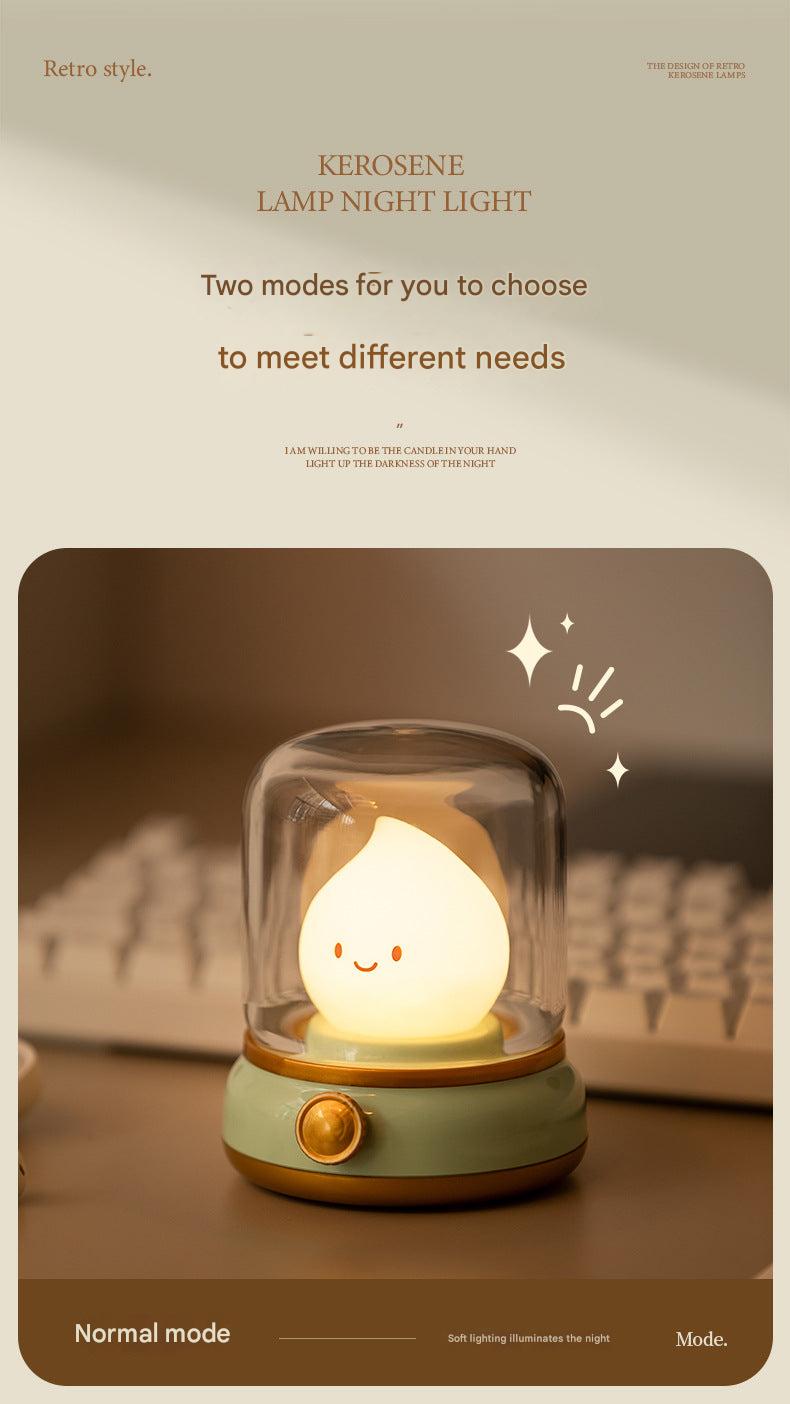 The Rechargeable Vintage Oil Lamp is an innovative bedside night light designed especially for babies and kids. This charming lamp features adjustable brightness settings, providing gentle light for soothing bedtime experiences. Why choose this lamp? It's USB rechargeable, eliminating the hassle of frequent battery changes. Its playful design adds a decorative touch to any room while ensuring it is safe for children. With a built-in timer, you can easily set the lamp to turn off after a set period, saving energy and providing peace of mind. Ideal for use during nighttime feedings or as a comforting presence for little ones as they drift off to sleep.
