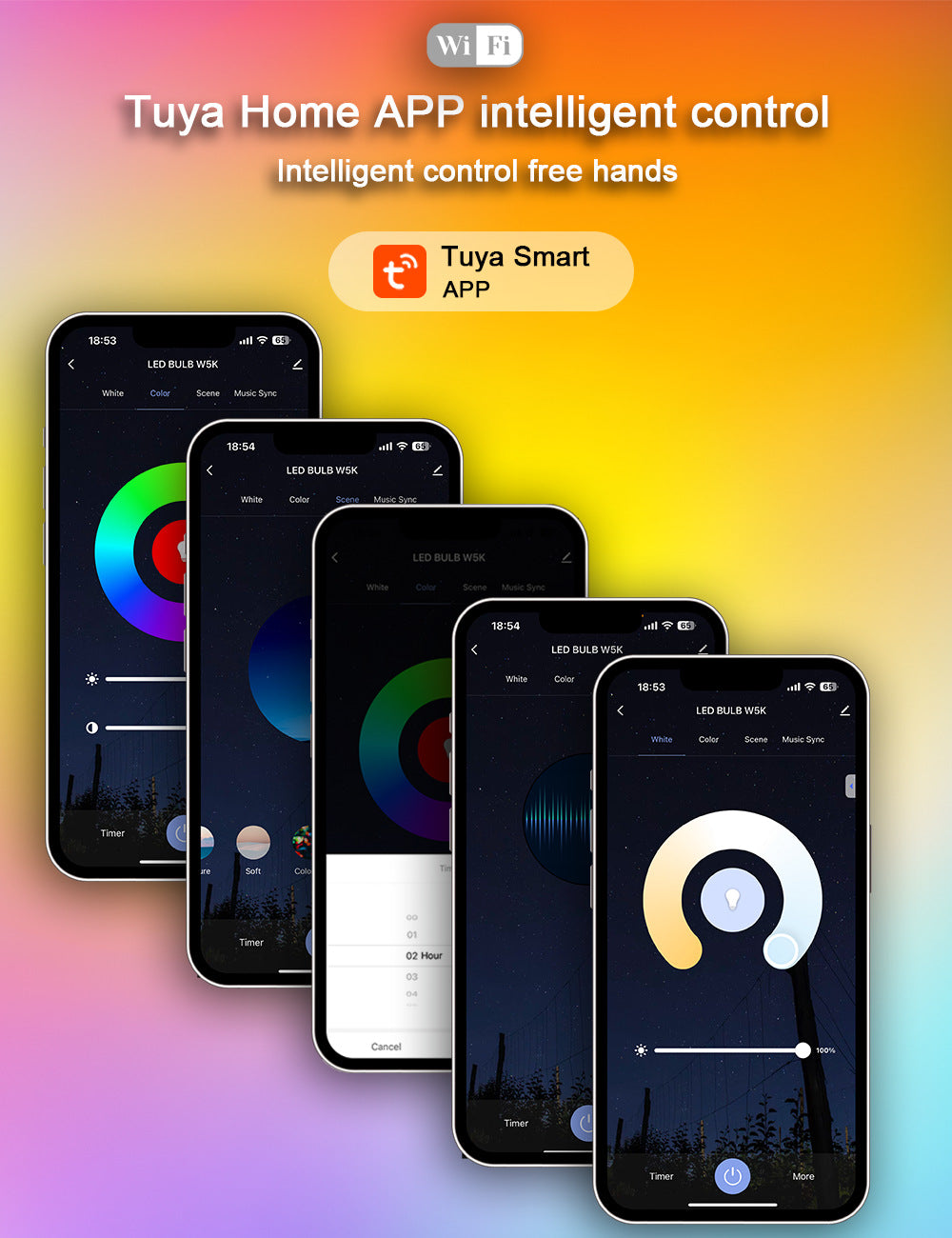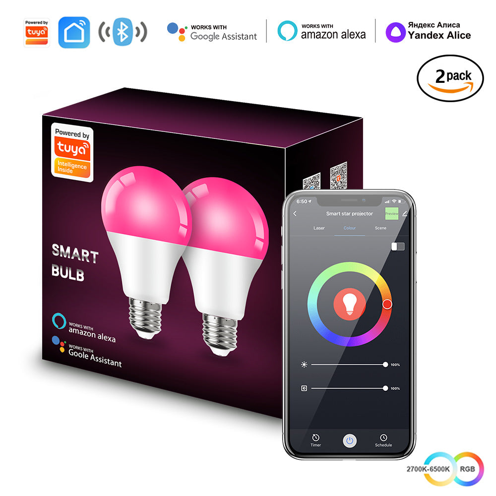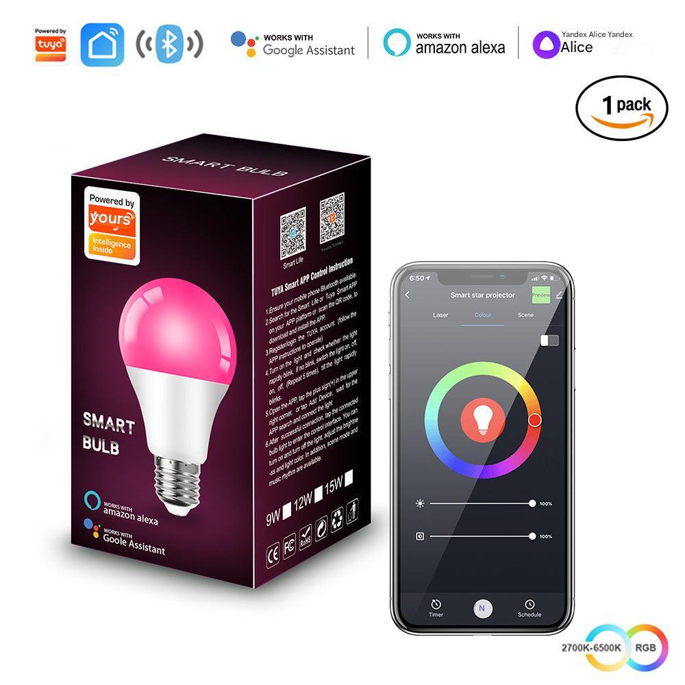 Smart LED Light Bulb, RGB Color Changing, WiFi Bluetooth Control, Compatible with Alexa and Google Home, Energy Efficient for Home Lighting