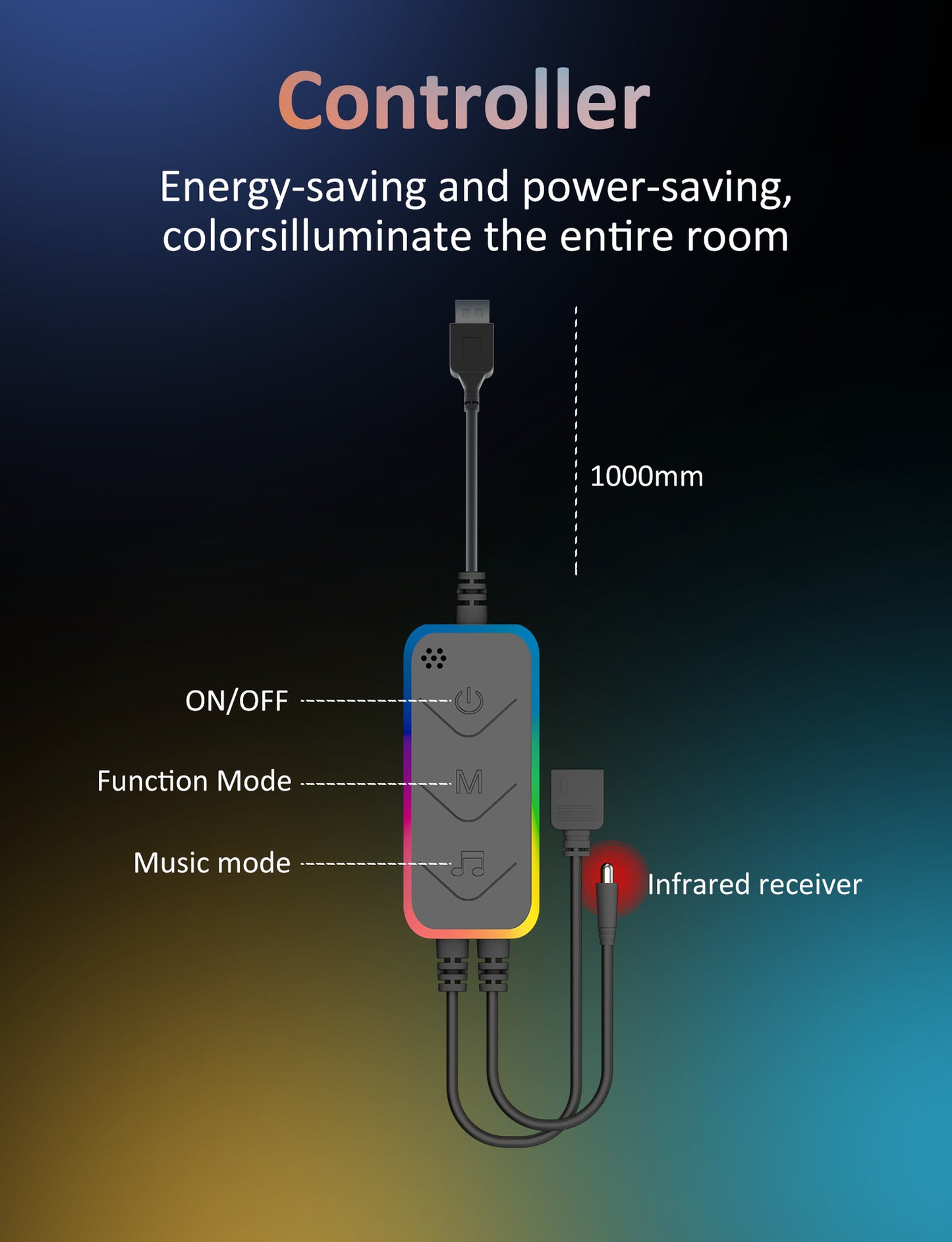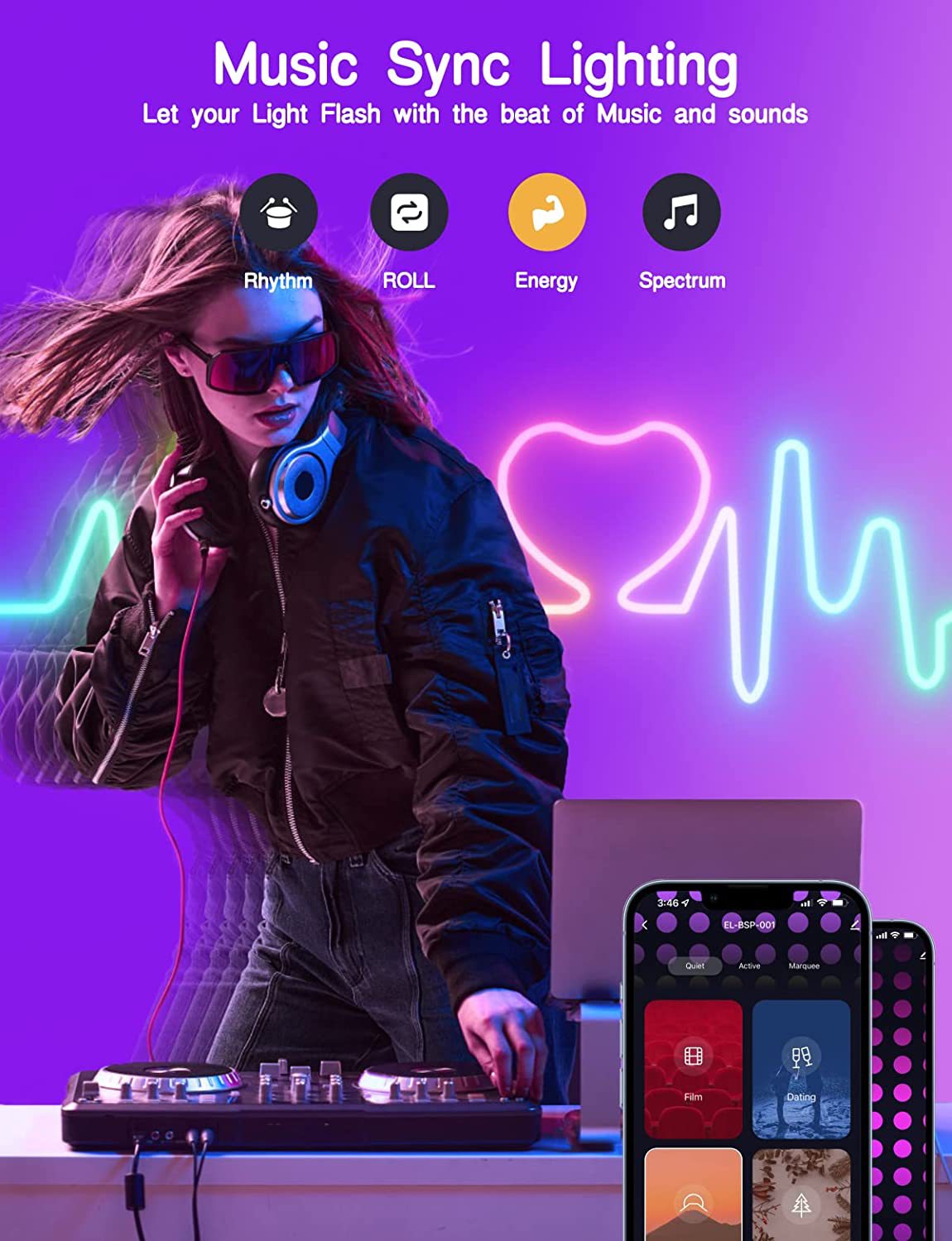 • Flexible Installation & Setup: The LED strip features a flexible design for easy installation around corners and under furniture, making it ideal for a variety of indoor settings.