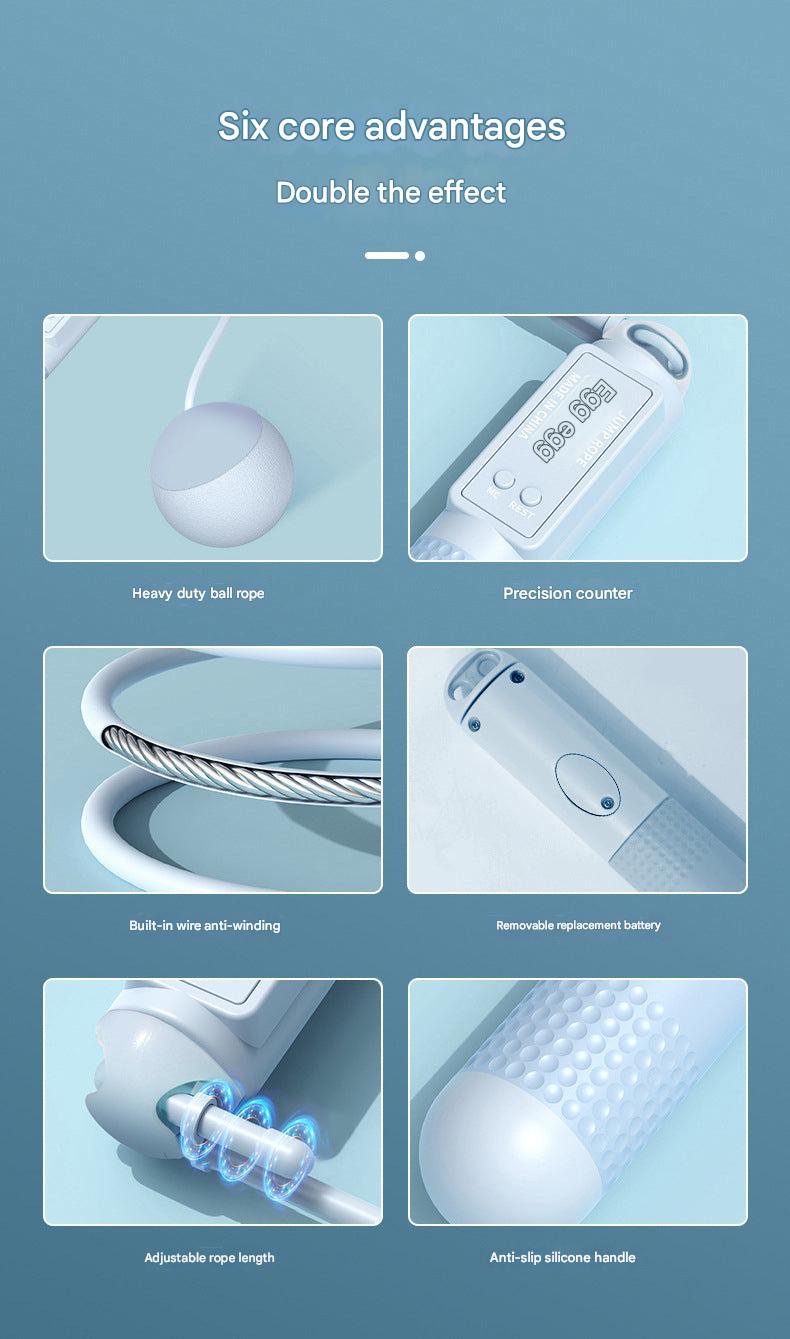 The Smart Weighted Jump Rope is designed for fitness enthusiasts who want to enhance their workouts with technology. This product features an intelligent counting mechanism that tracks your jumps, making it easy to monitor your progress without distractions. Ideal for both running and general fitness, this jump rope is made from high-quality ABS material, ensuring it stands up to rigorous use. With various weight options and vibrant color selections, it caters to all kinds of users, from beginners to seasoned athletes. Whether you are exercising in your living room or hitting the gym, this jump rope is the perfect companion for your fitness journey.