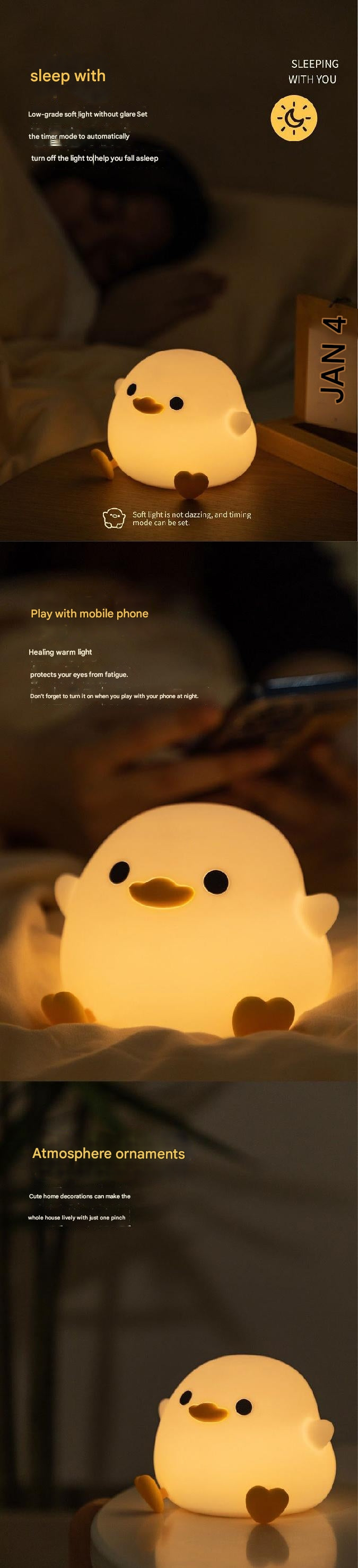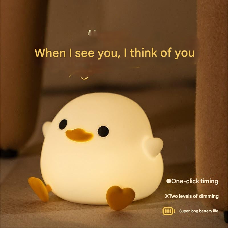 Soft Silicone Duck Night Light - Rechargeable Bedside Lamp with Timer for Children's Bedroom
