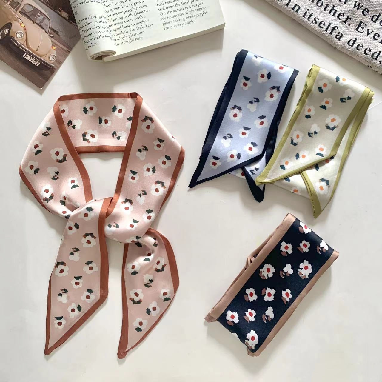 Stylish Daisy Print Silk Scarf Headband for Effortless Autumn Fashion