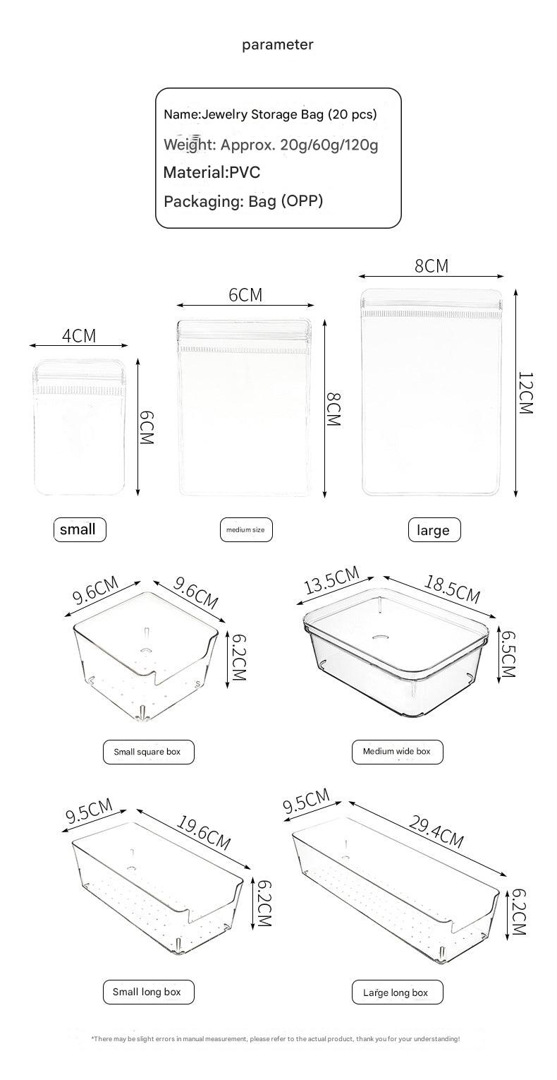 The Stylish Jewelry Organizer Bag is designed to serve as an all-in-one solution for your jewelry storage needs, especially for those on the move. Made from high-grade plastic, this soft yet durable bag is built to last. It features multiple compartments to neatly organize and store your earrings, rings, and necklaces without the stress of tangles. Whether you’re going on a trip or just looking to declutter your dresser, this bag answers the common question of how to keep jewelry securely stored. Its clear design not only means you can see all your options at a glance, but also makes it easy to clean. Available in various sizes, this jewelry organizer is perfect for both small collections and larger assortments. Enjoy the peace of mind that comes from storage that is both functional and fashionable.