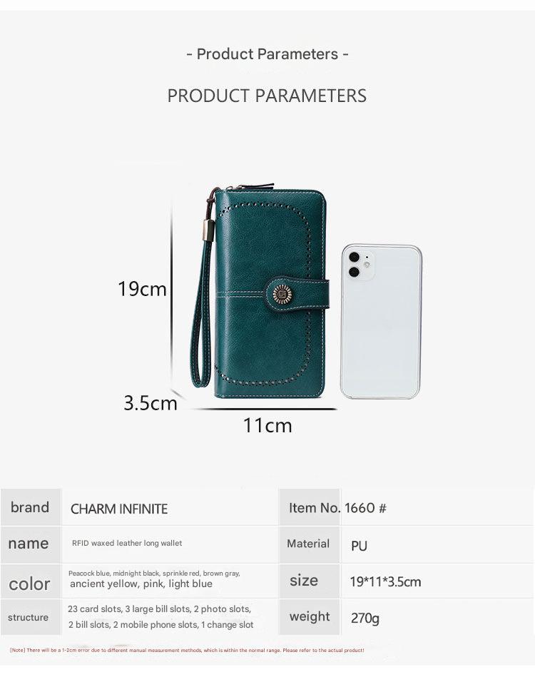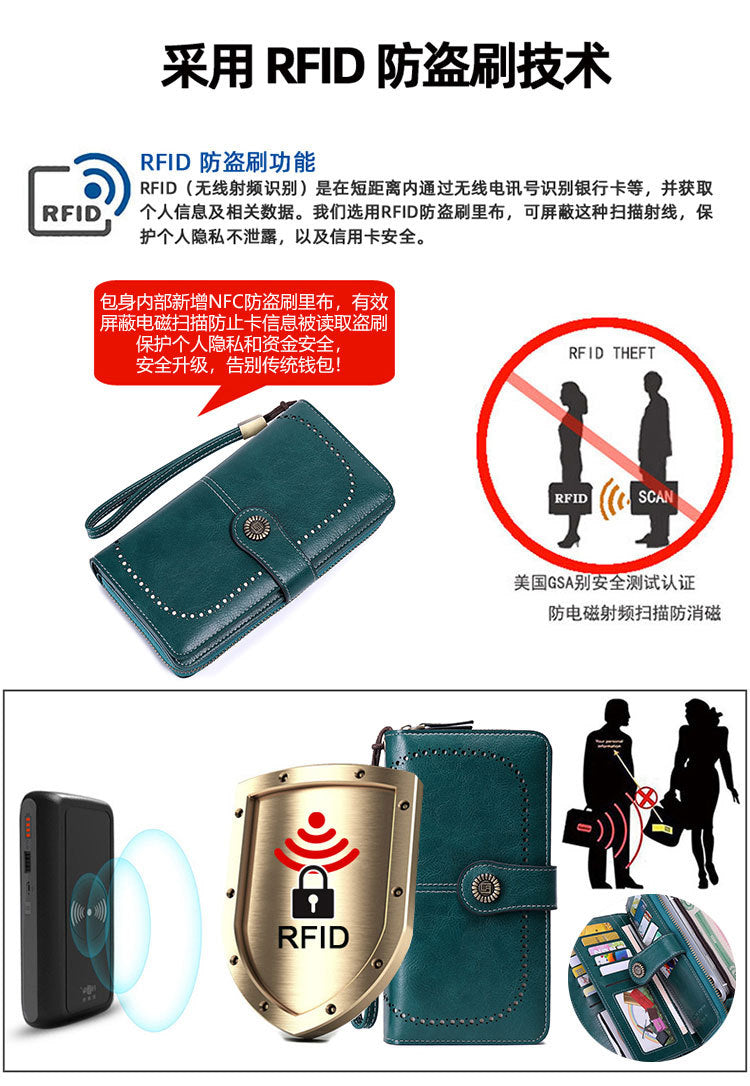 Introducing the RFID Blocking Long Zip Wallet, designed specifically for modern women looking for style and security. This wallet not only protects your card information with its advanced RFID technology but also provides generous space for all your essentials. Crafted from durable PU leather, it offers water-resistant qualities, making it an ideal companion for everyday use. With multiple color choices and a chic design, it effortlessly suits any occasion. Whether you're heading to the office or out for a night with friends, this wallet is the perfect accessory to keep you organized and stylish.