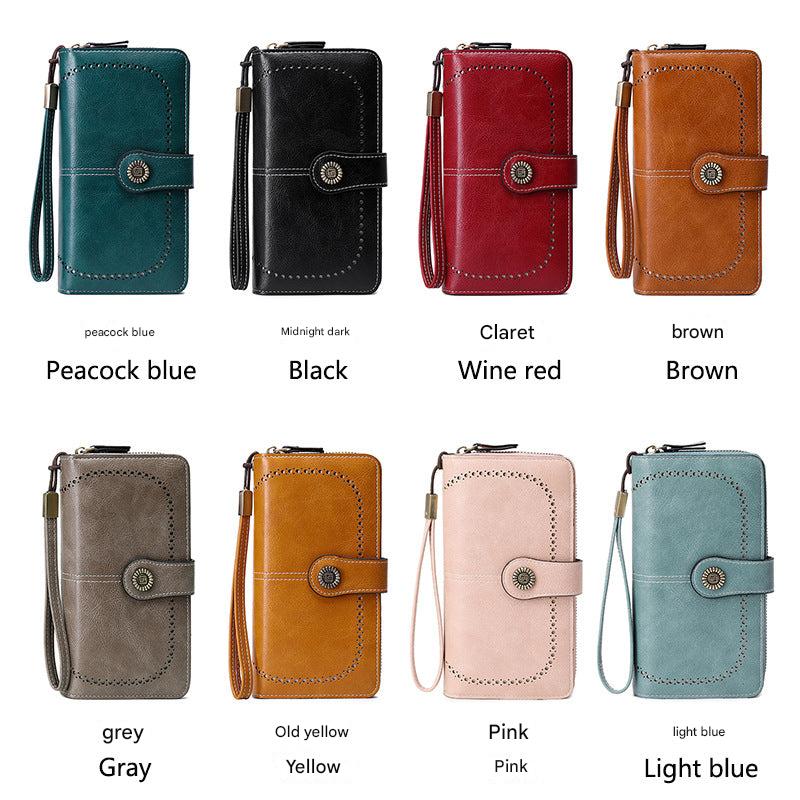 Stylish RFID Blocking Long Zip Wallet for Women - Spacious Handheld Purse Available in Multiple Colors