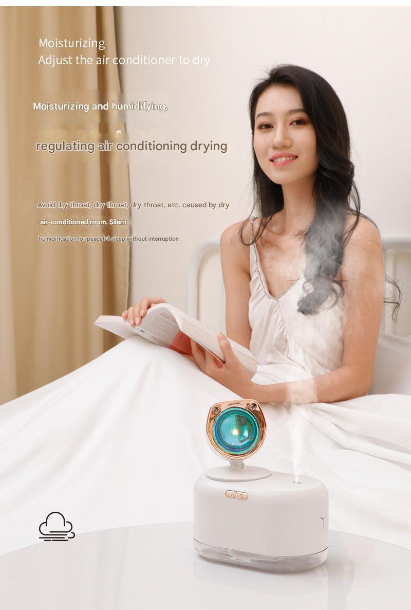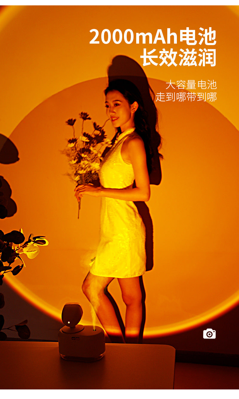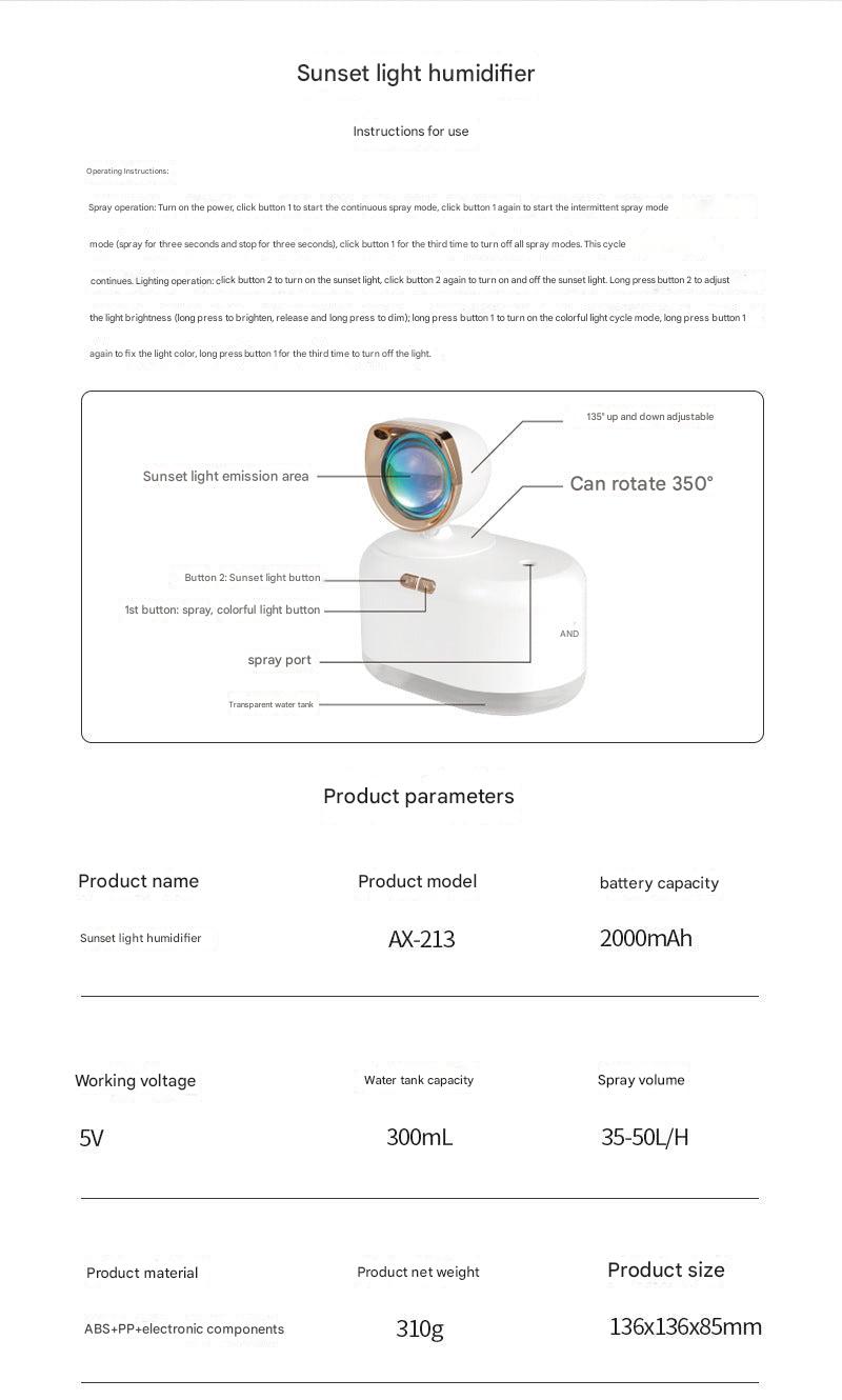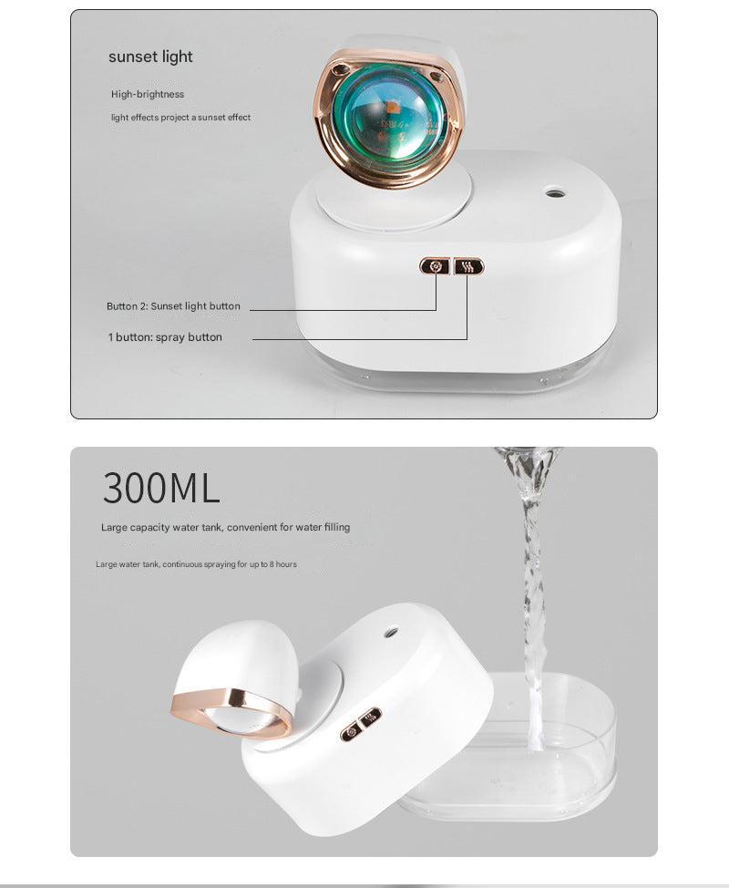 Sunset Lamp Humidifier with LED Projection Light and USB Charging, Compact Tabletop Ultrasonic Mini Air Humidifier for Home Use