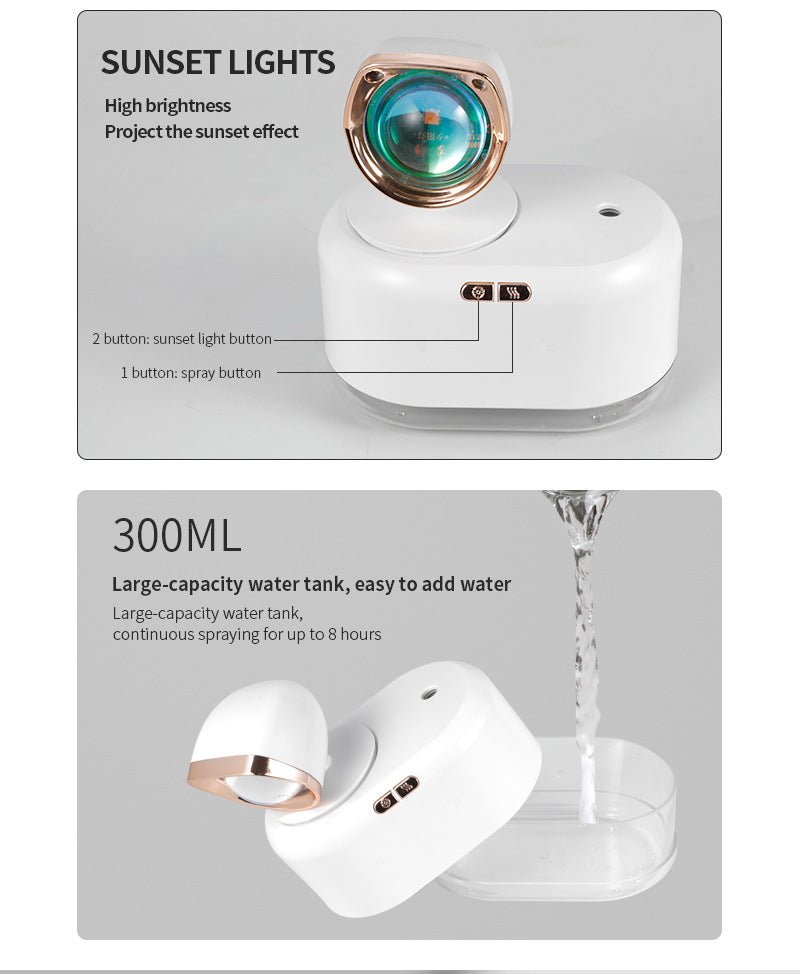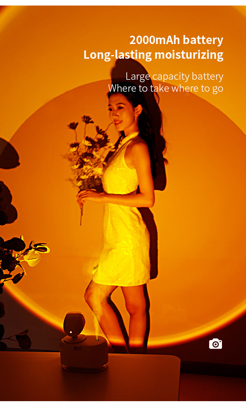• Stylish Sunset Lamp Design combines ambiance lighting and humidification in one.