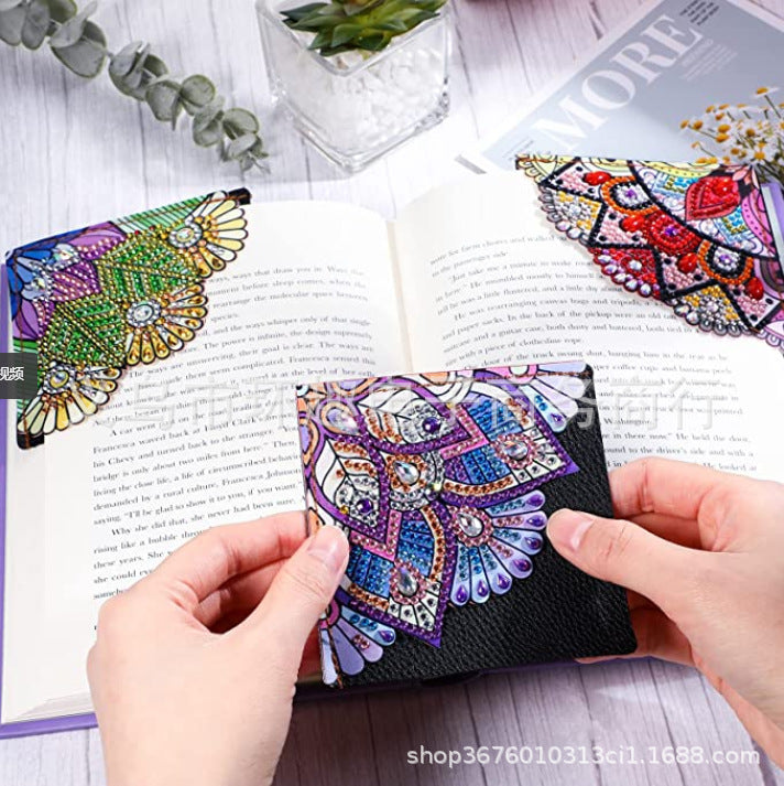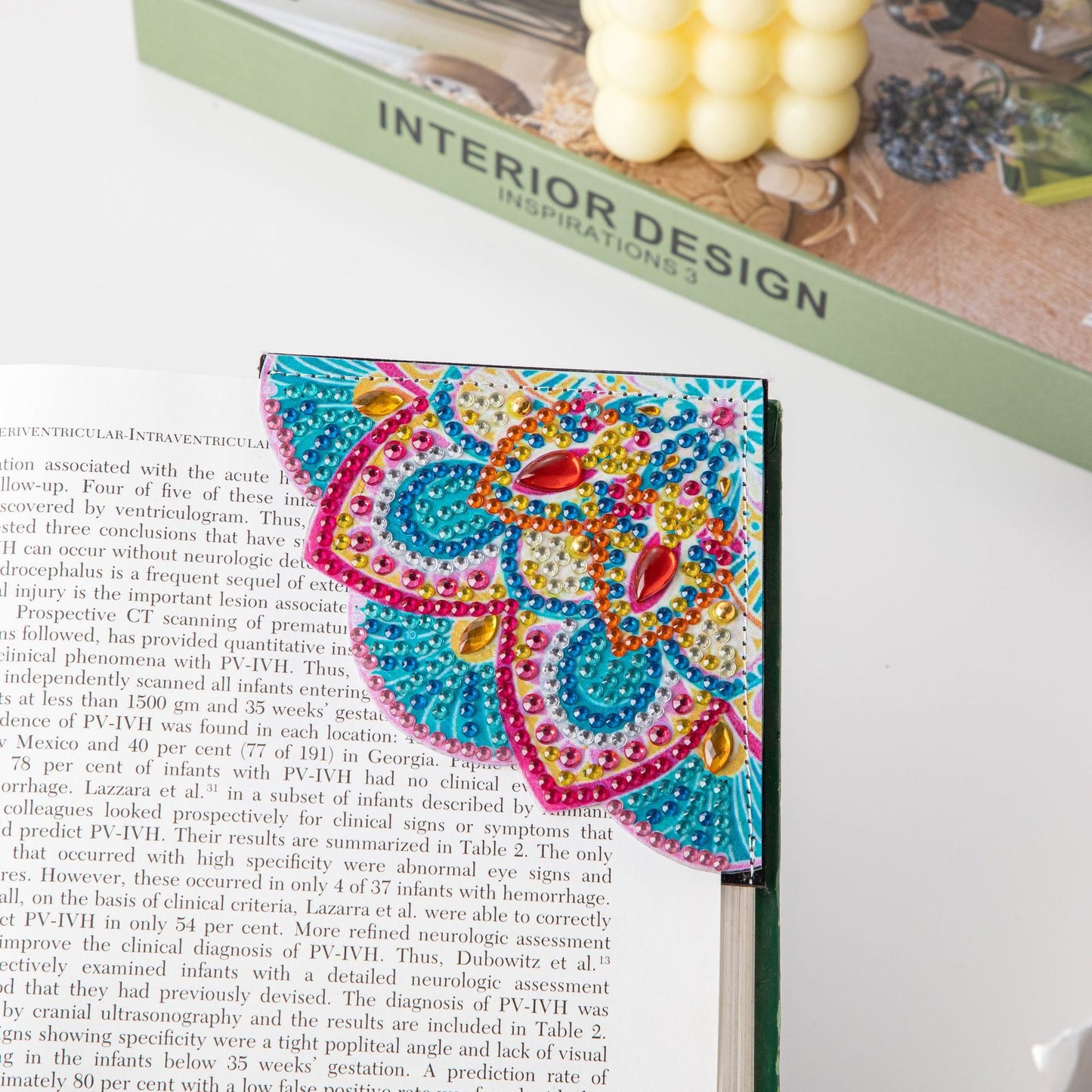 Triangular DIY Diamond Bookmark Kit with Luminous Crystal and Mandala Flower Design