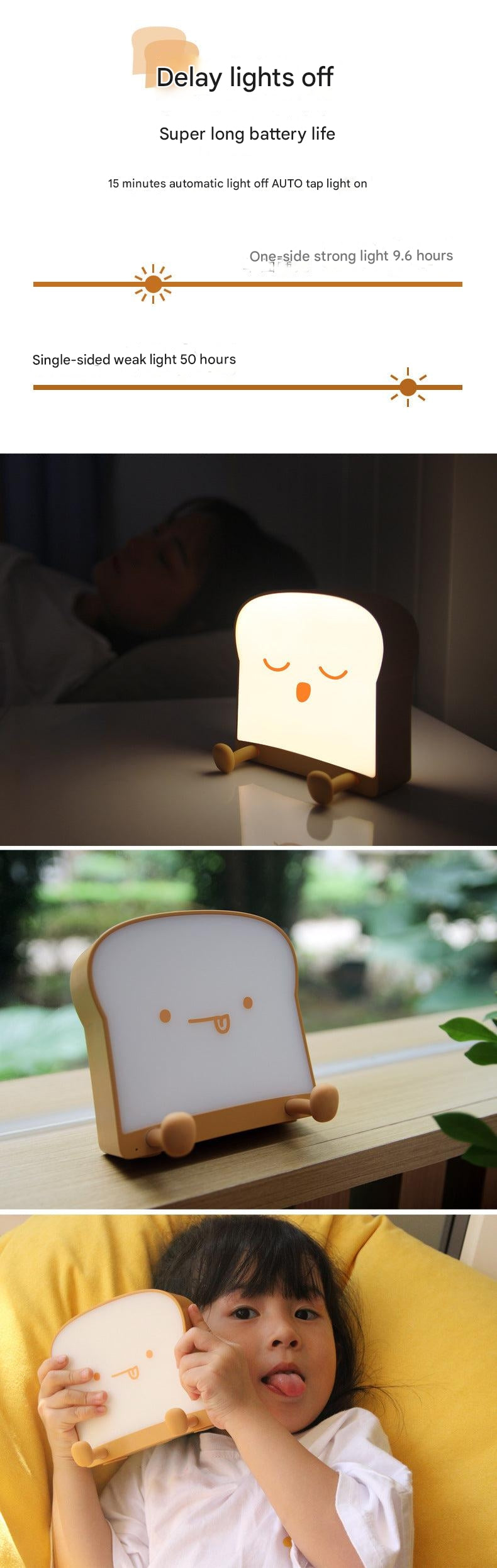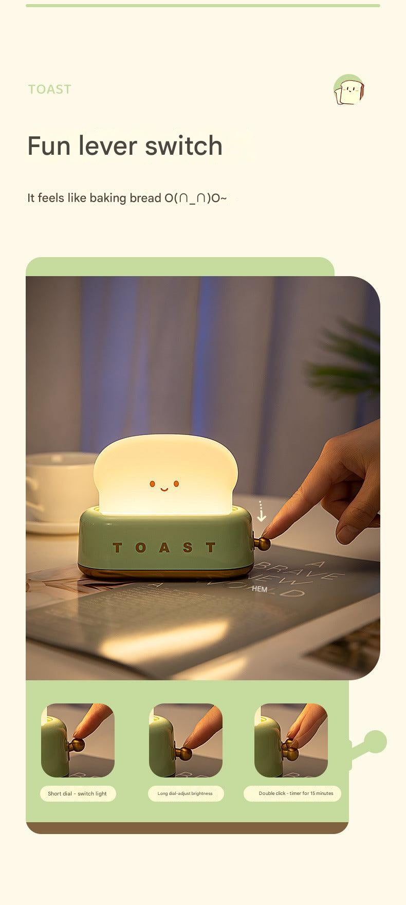 Illuminate your bedtime routine with our USB Charging Toast Bread Night Light, a perfect blend of functionality and whimsy. Designed to evoke the familiar and comforting shape of toast, this night light adds a dash of cuteness to any bedroom. It features touch-sensitive controls, making it easy to operate even in the dark. Simply tap the bread to switch between different light settings, ensuring the perfect ambiance for your sleep.