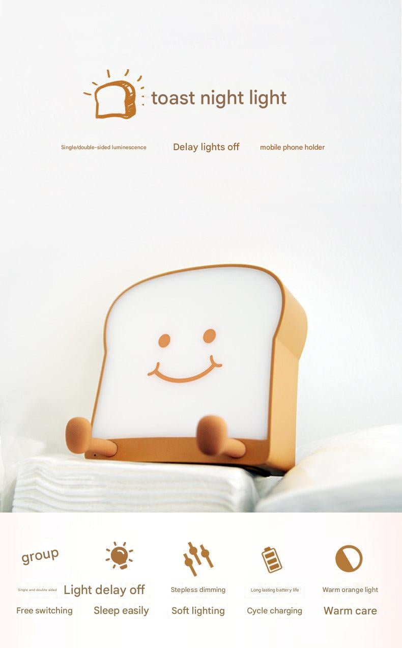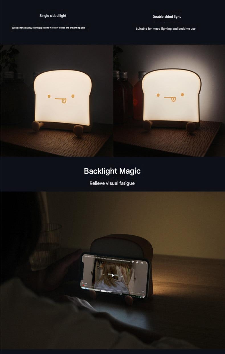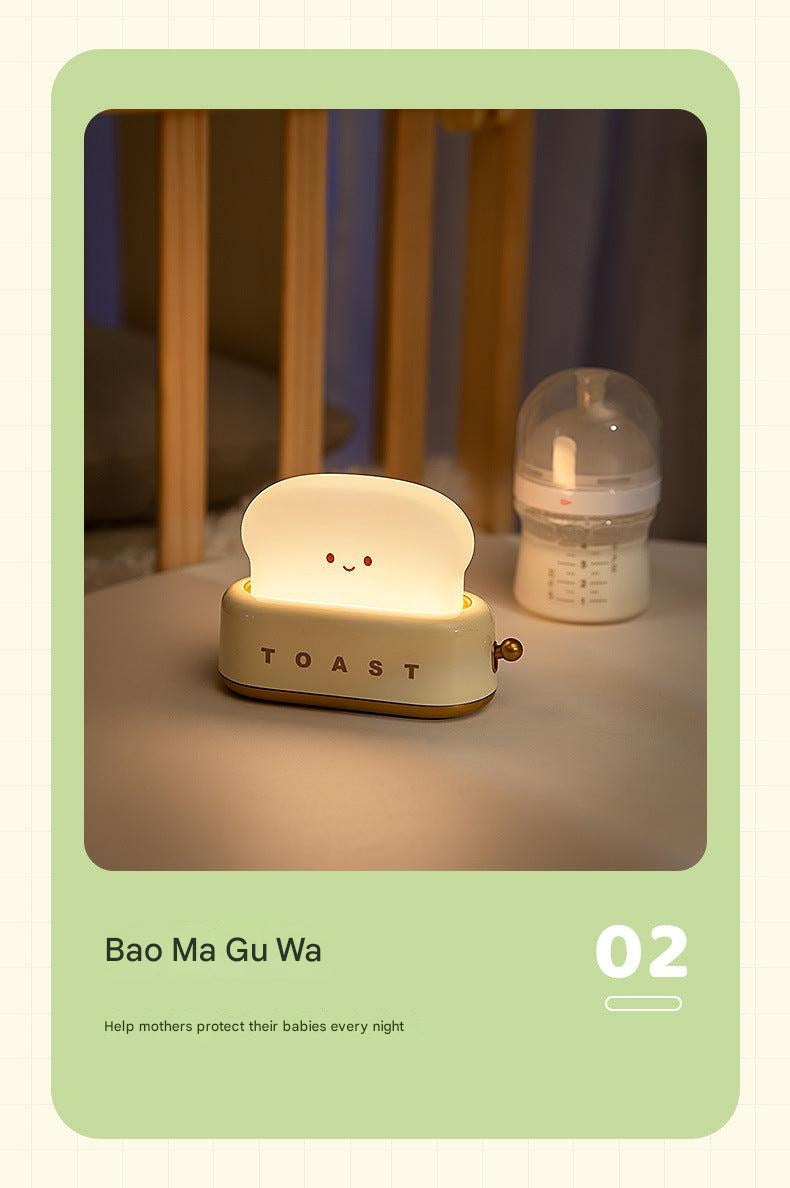 USB Charging Toast Bread Night Light - Cute Bedroom Touch-Sensitive Bedside Lamp