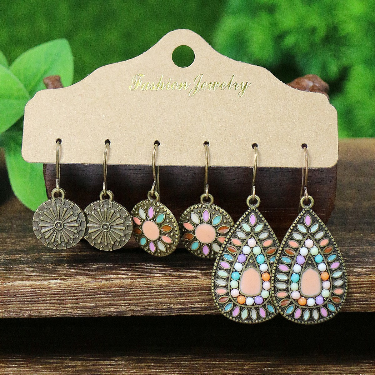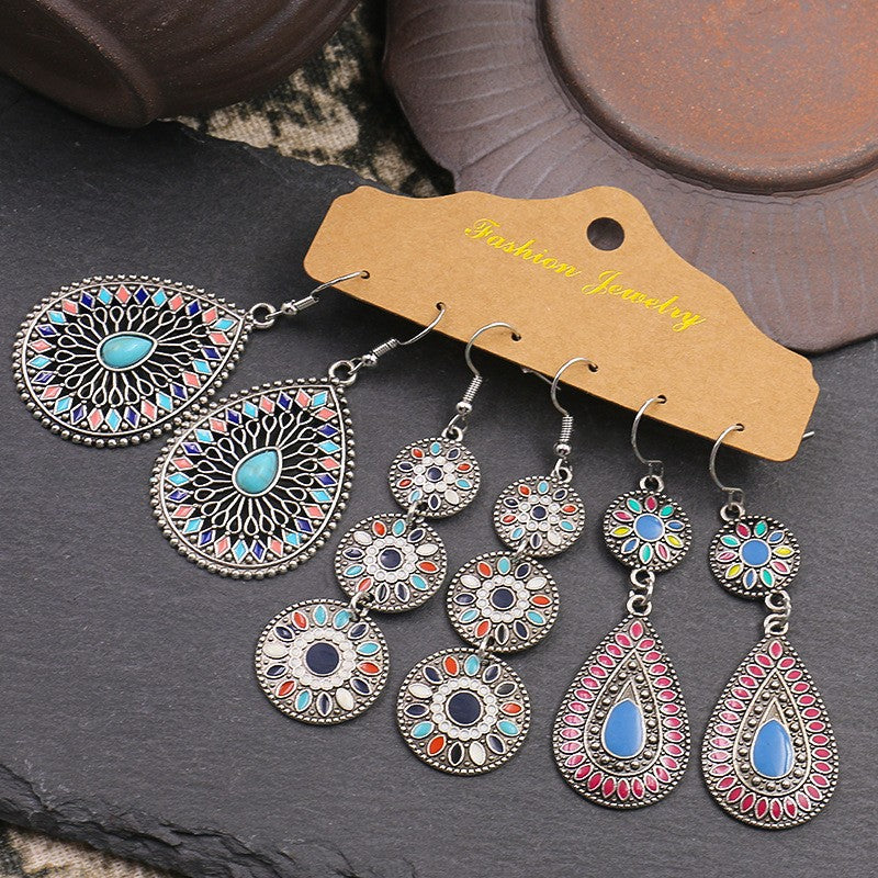 Vintage Teardrop Geometric Tassel Earrings Set - 3 Pairs for Elegant Style