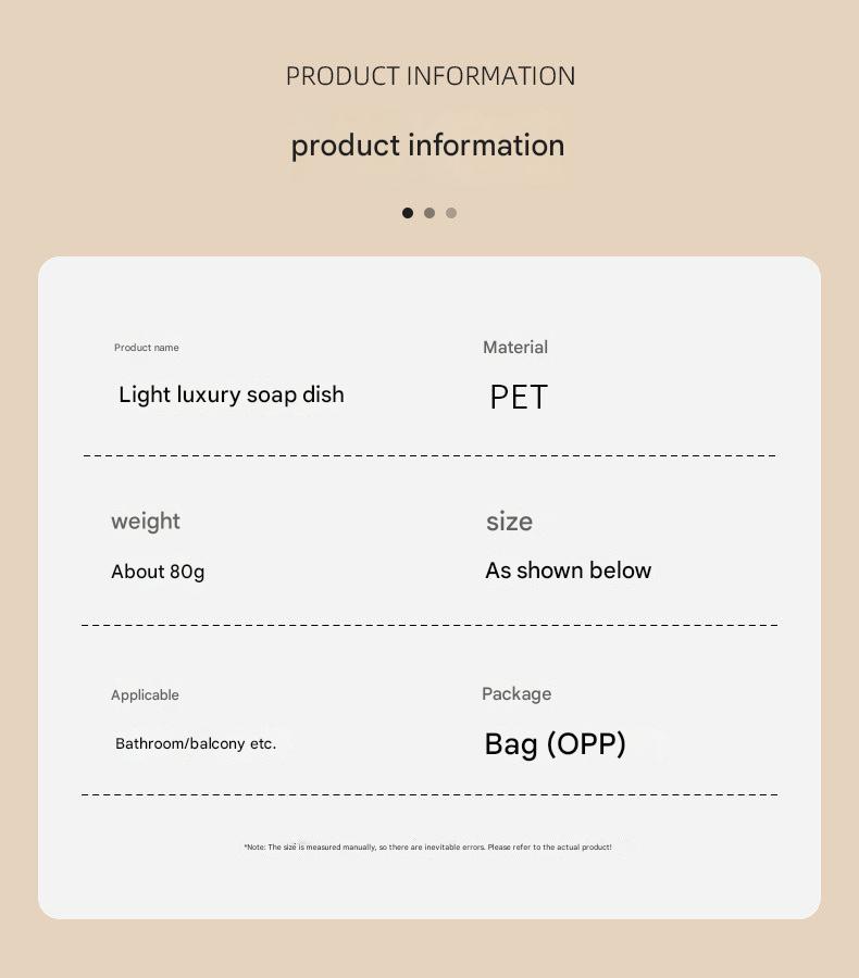 • Durable Material: Crafted from high-quality PET, this soap holder is built to last and withstand daily use in wet bathroom environments.