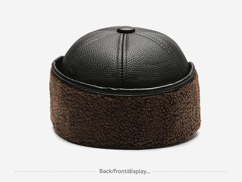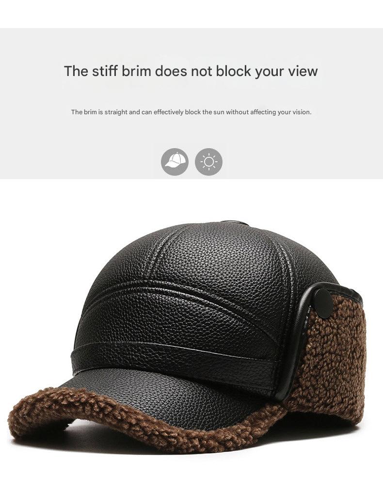 Warm PU Leather Winter Hat for Men and Elderly - Stylish and Protective Ear Flap Cap