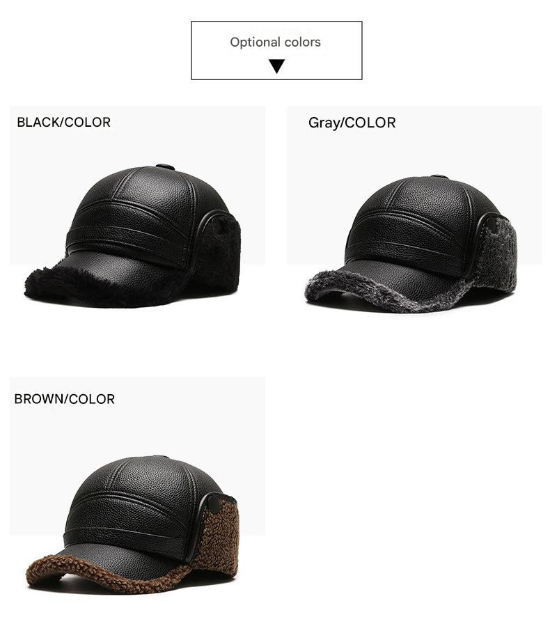 This PU leather winter hat is perfect for men and elderly individuals seeking both style and warmth. It features a classic baseball cap design with ear flaps for extra protection against the cold. Made from high-quality materials, the hat is not only fashionable but also functional, ensuring your head and ears stay warm in frosty conditions. Whether you're heading out for a casual outing or enjoying outdoor activities in winter, this versatile accessory offers a snug fit and a stylish look. The hat's one-size-fits-all design allows it to cater to different head sizes, making it an ideal gift for loved ones. Available in three timeless colors—black, gray, and brown—this hat complements any winter outfit effortlessly.