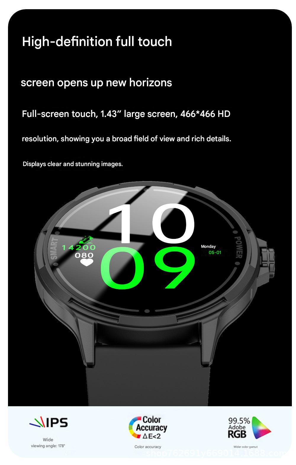Y25 Smartwatch with Bluetooth Calling, Heart Rate, Blood Pressure, Blood Oxygen & Sugar Monitoring - 1.43'' HD Display, Music Control, Sports Design